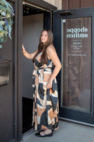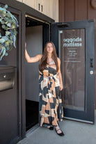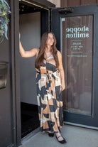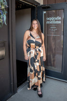 This maxi dress features a bold geometric print and an ultra-flared hem for a striking silhouette. It boasts a dramatic A-line shape, a removable belt to cinch your waist, delicate shoulder straps, and a V-neckline both front and back. Plus, it’s unlined for a light, breezy feel.