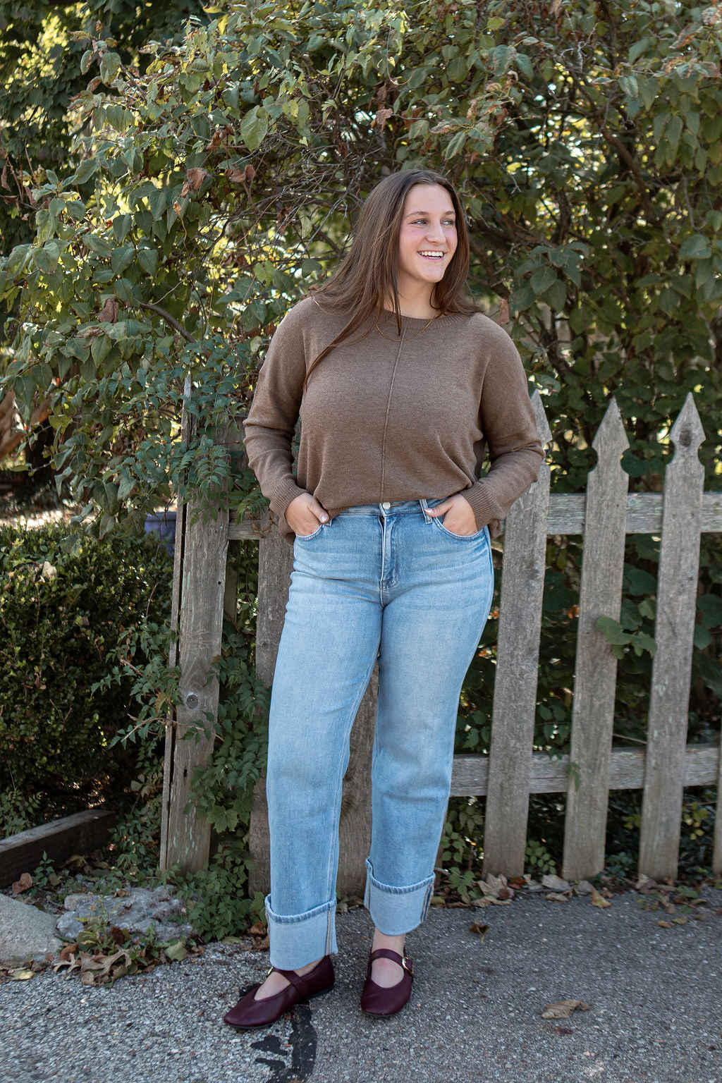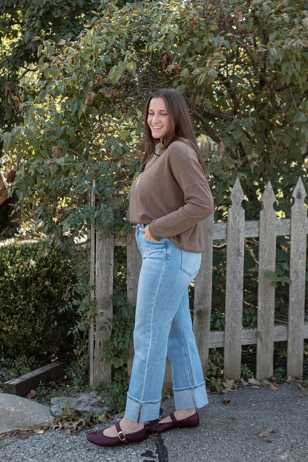 Step up your denim game with the Elan High Rise Medium Light Wash Cuffed Slim Wide Jeans by Flying Monkey. Featuring a comfy stretch denim fit and a flattering high-rise waist, these jeans blend style with ease. The single cuff hem and ankle length add a trendy twist, while the classic five-pocket design keeps it practical. Perfect for those who love a playful yet comfortable look with a cool vintage vibe.