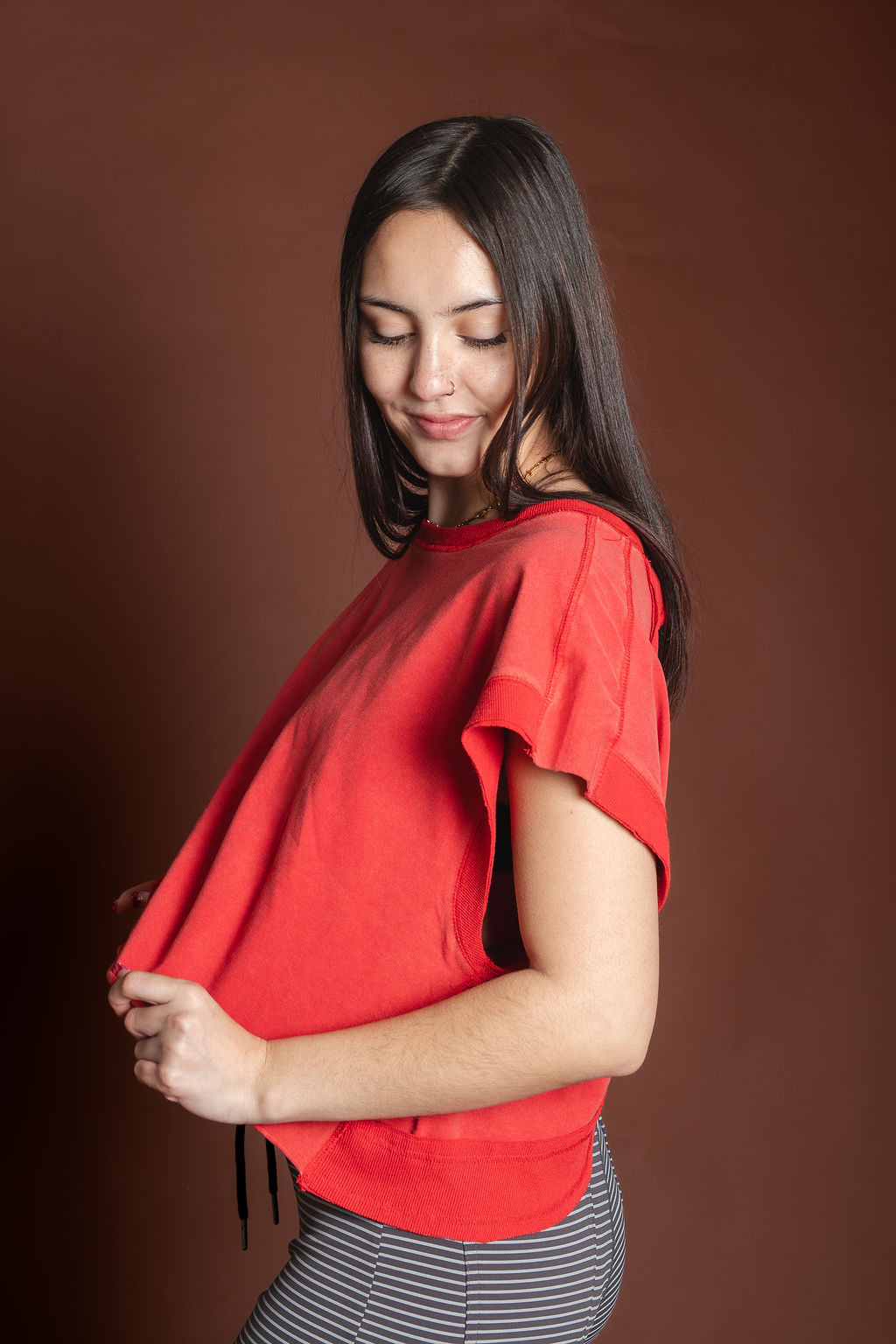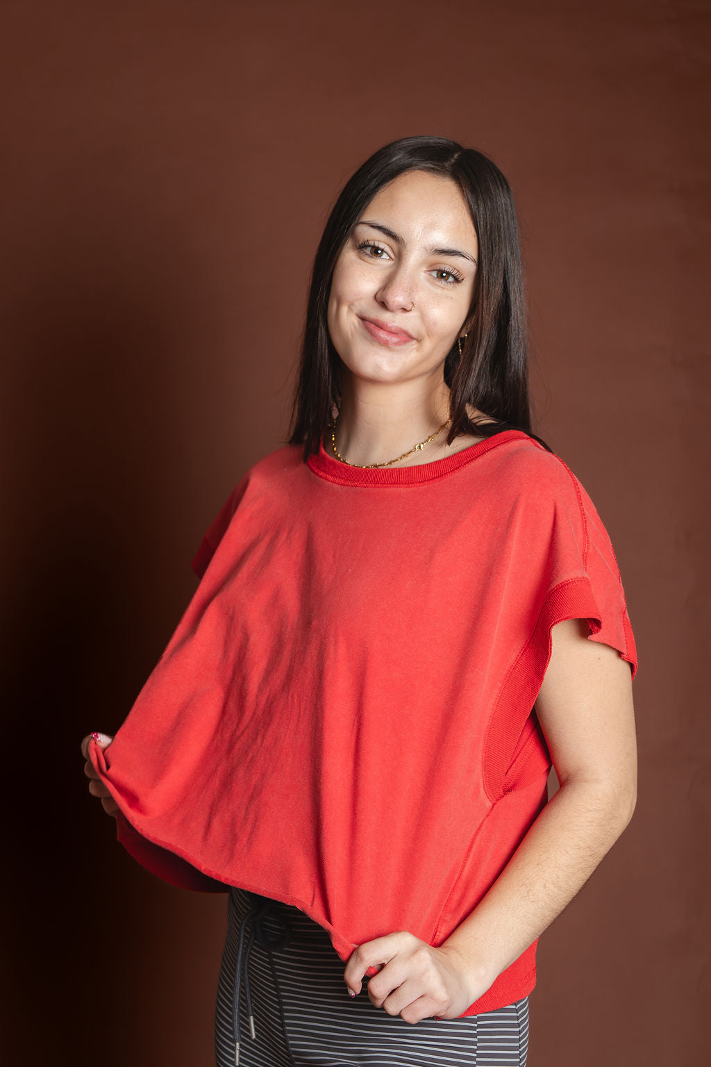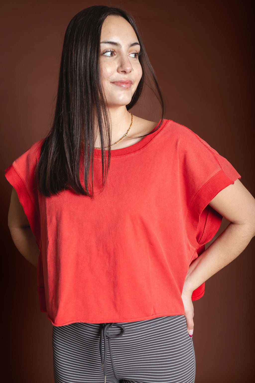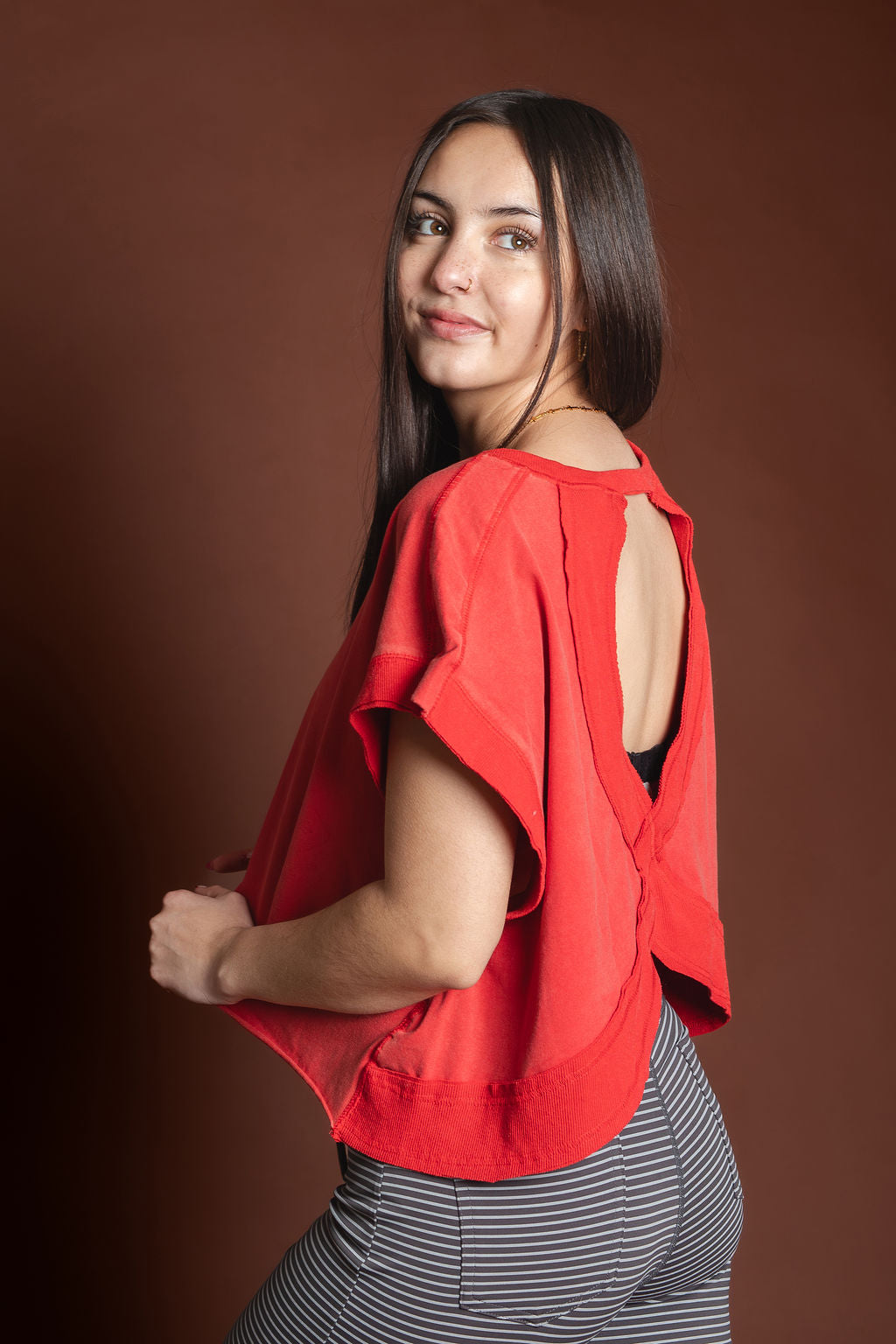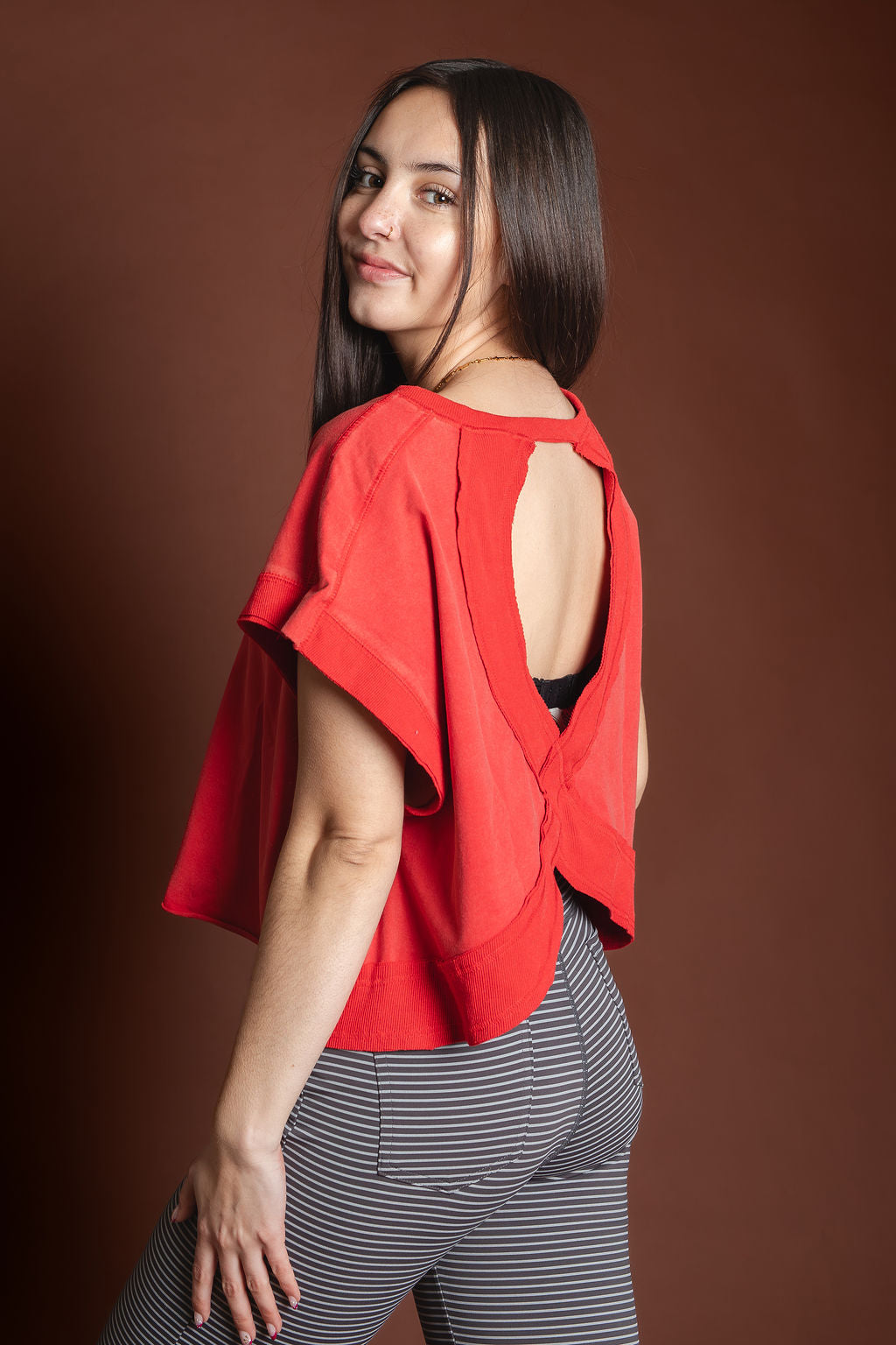 Gabs Red Mineral Washed Open Back Top