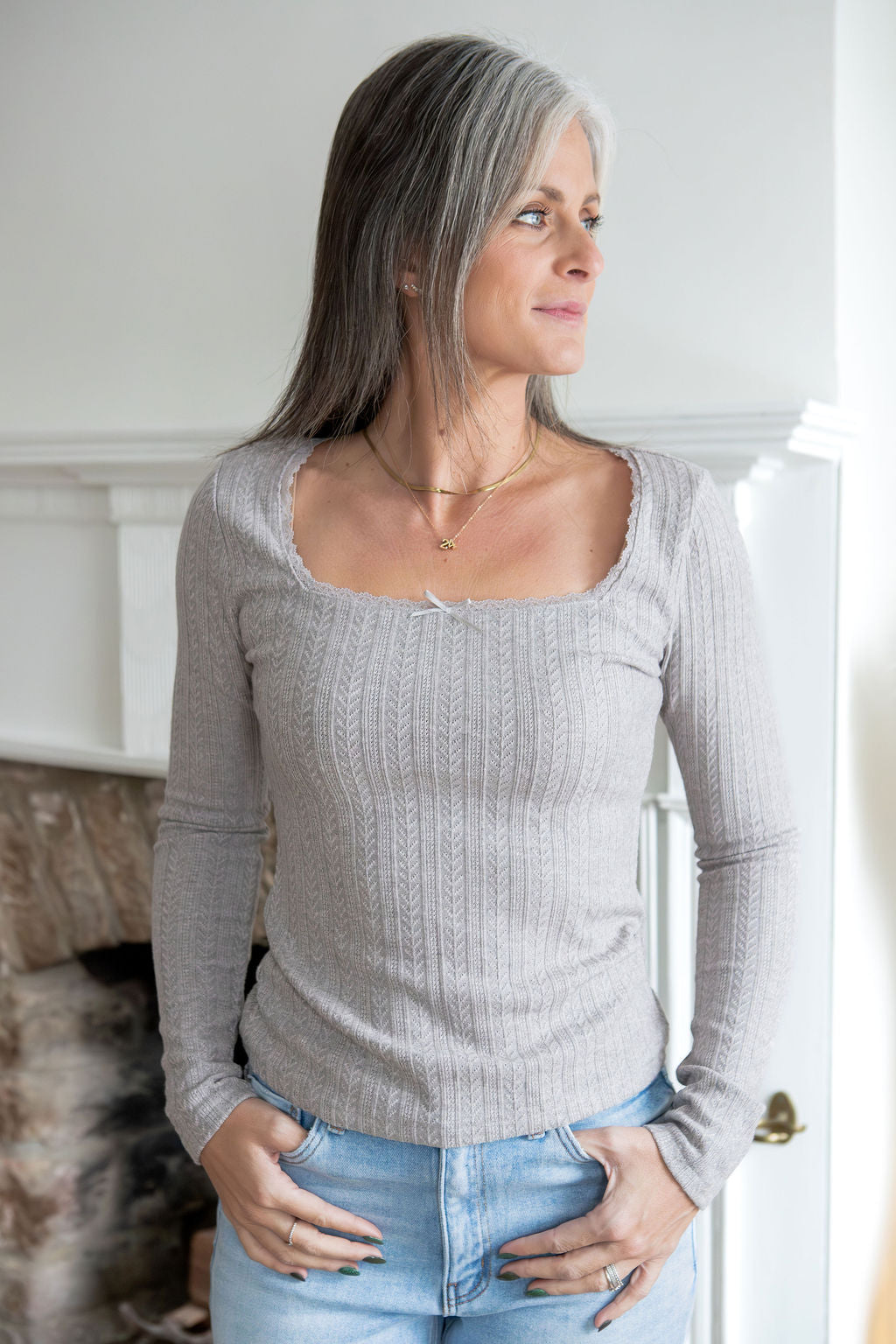Introducing the Haddie—your new go-to for effortless elegance with a flirty twist. This pointelle knit top features delicate lace edging that frames a charming square neckline, creating a look that's both romantic and modern. The breathable knit fabric moves with you, making it perfect for layering or wearing solo. Whether you're dressing up for brunch or keeping it casual, this versatile piece brings a touch of sophistication to any outfit. Comfort meets style in the most delightful way.