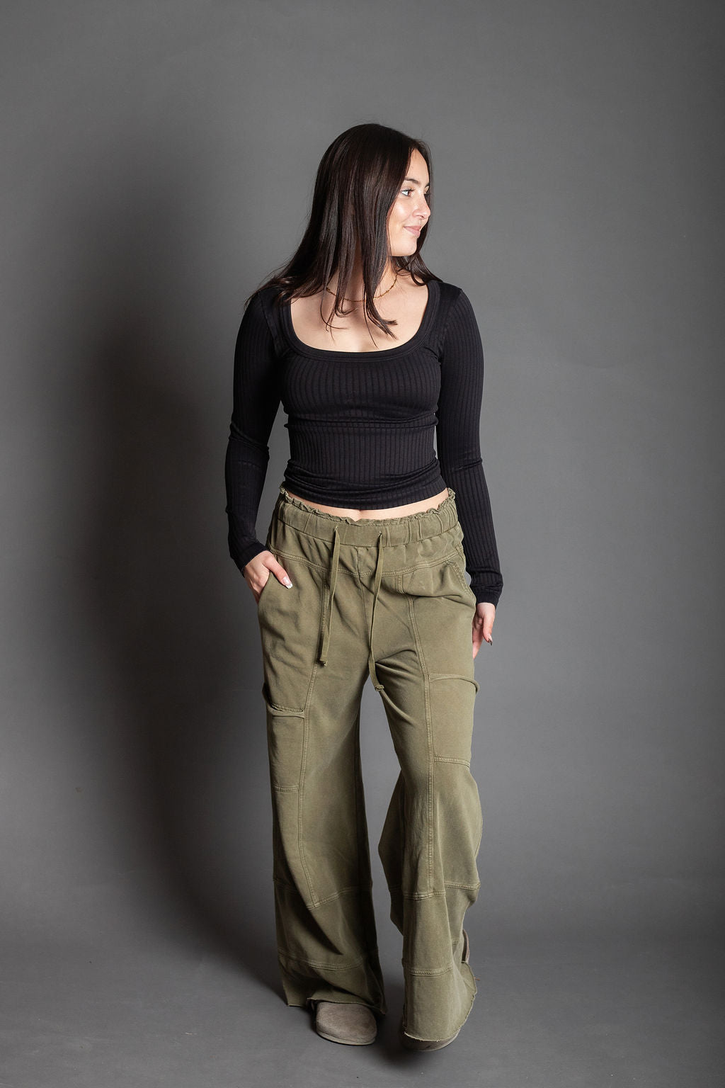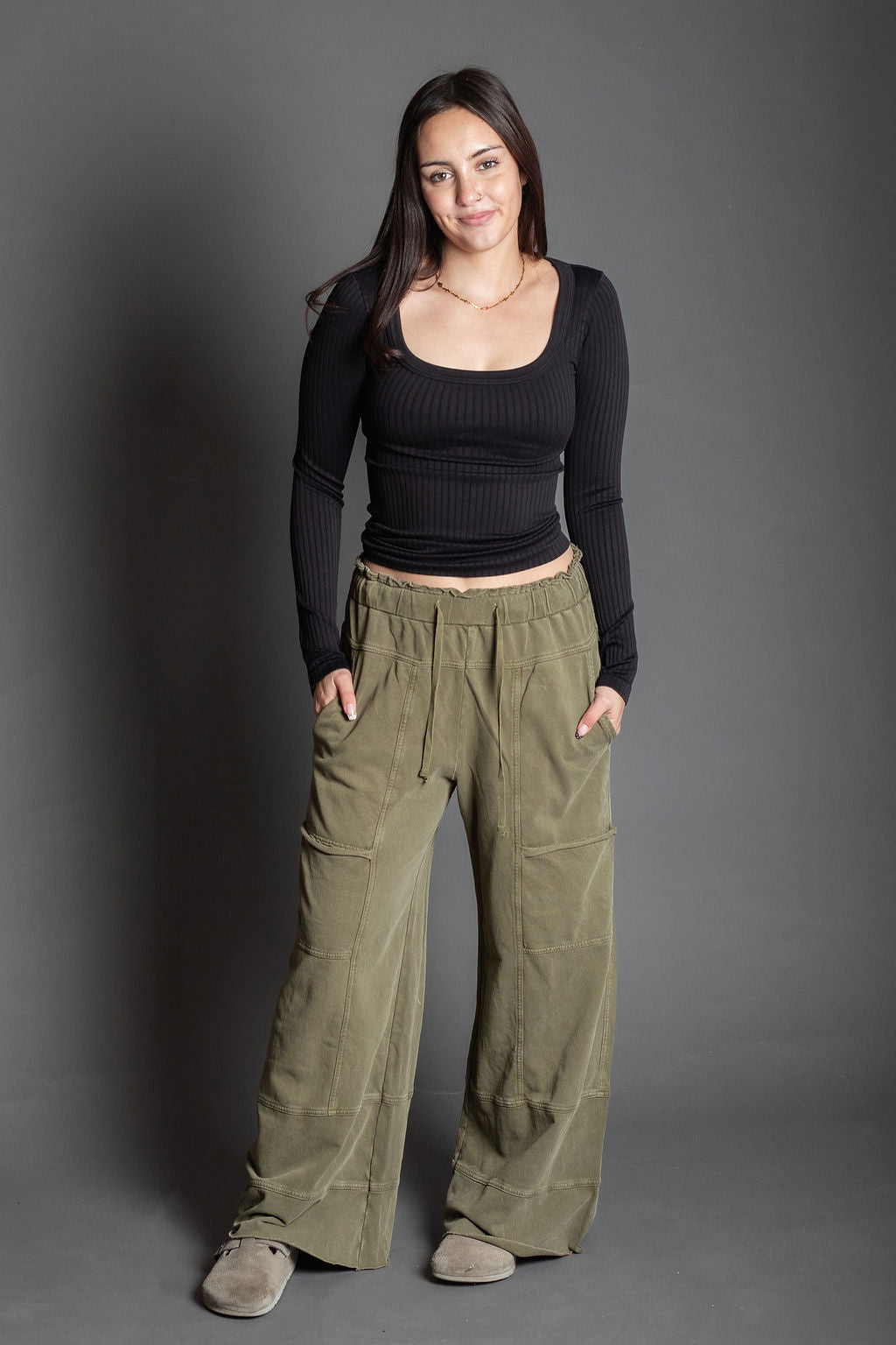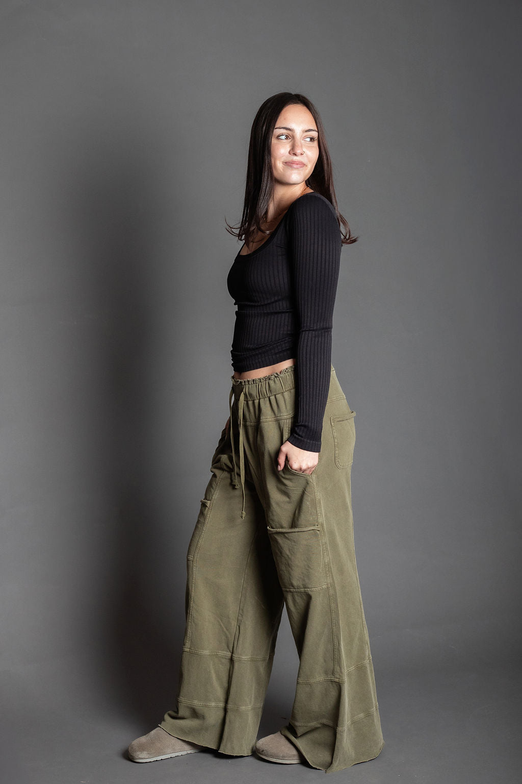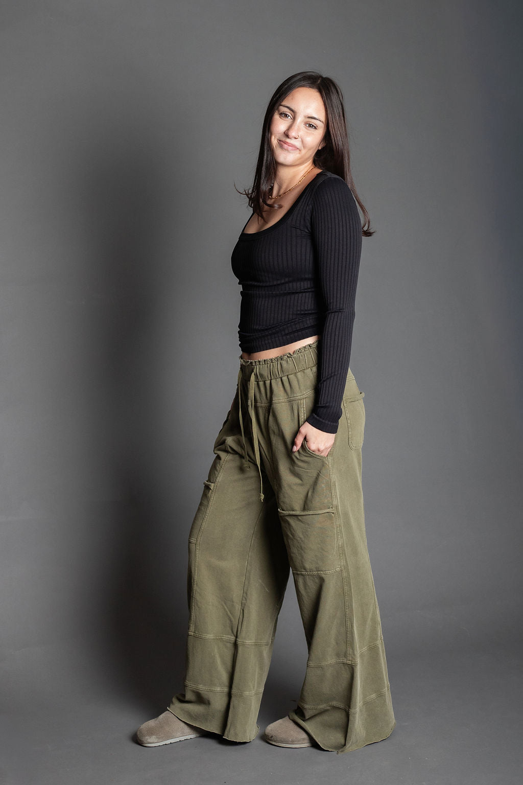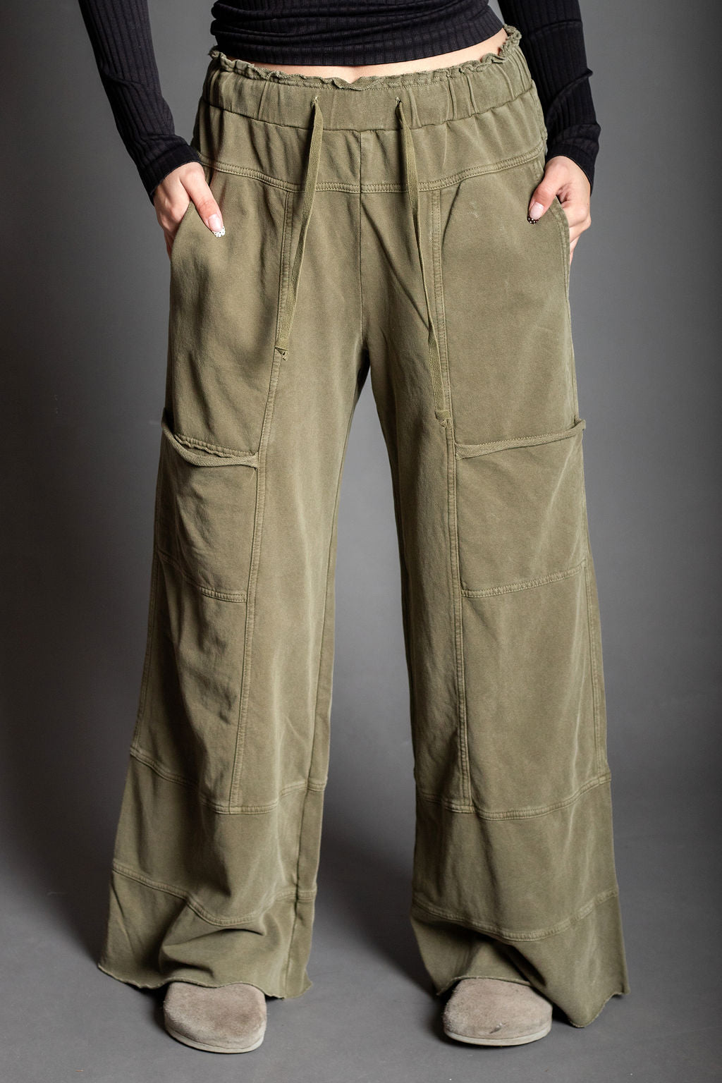 Kismet Long Olive Wide Cargo Pants