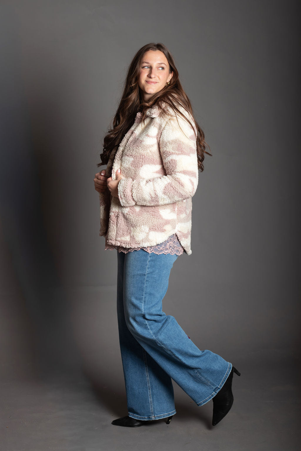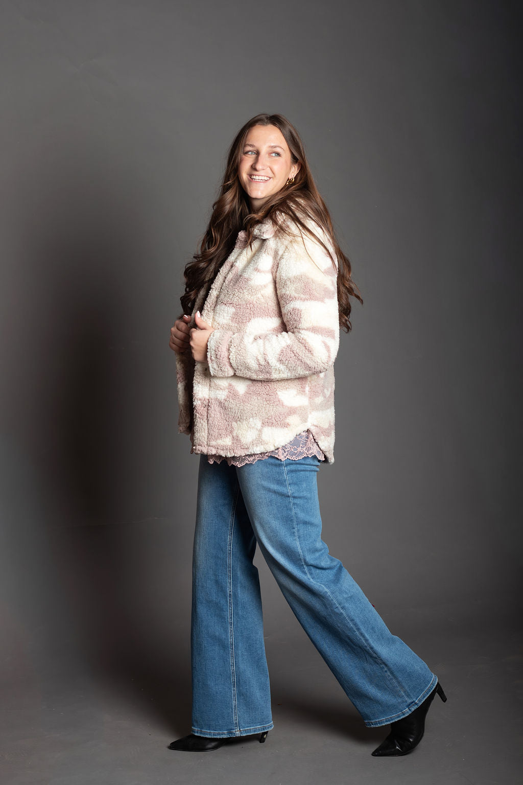 Mauve/Cream Camo Sherpa Jacket