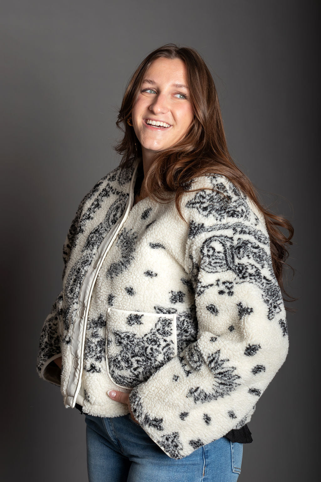 Rue Paisley Print Drop Shoulder Teddy Jacket
