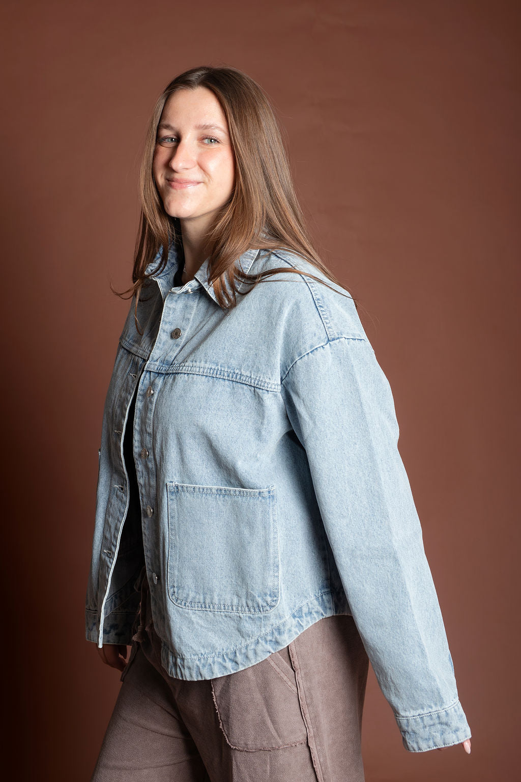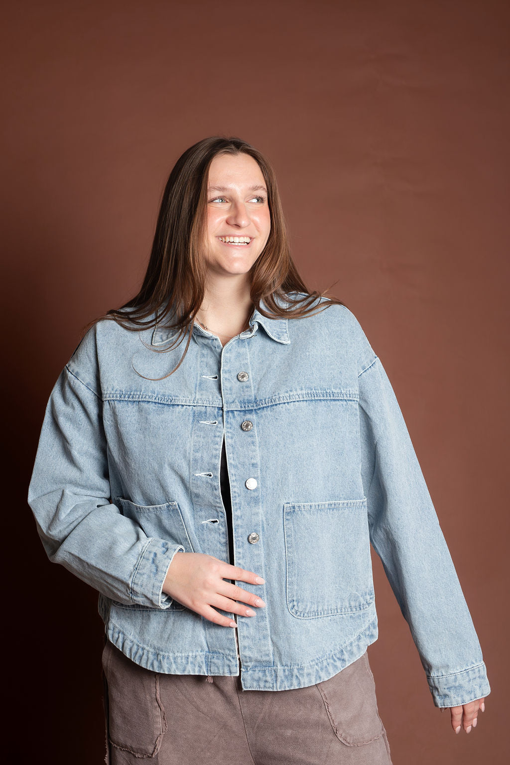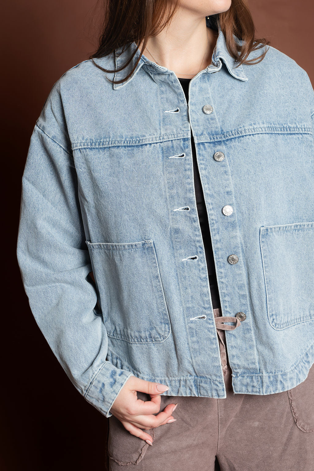 This short length denim jacket features a slight boxy fit that's perfect for spring and summer layering. Crafted from classic denim and imported for quality construction, it's a versatile staple with a buttoned front closure that works with any casual wardrobe.