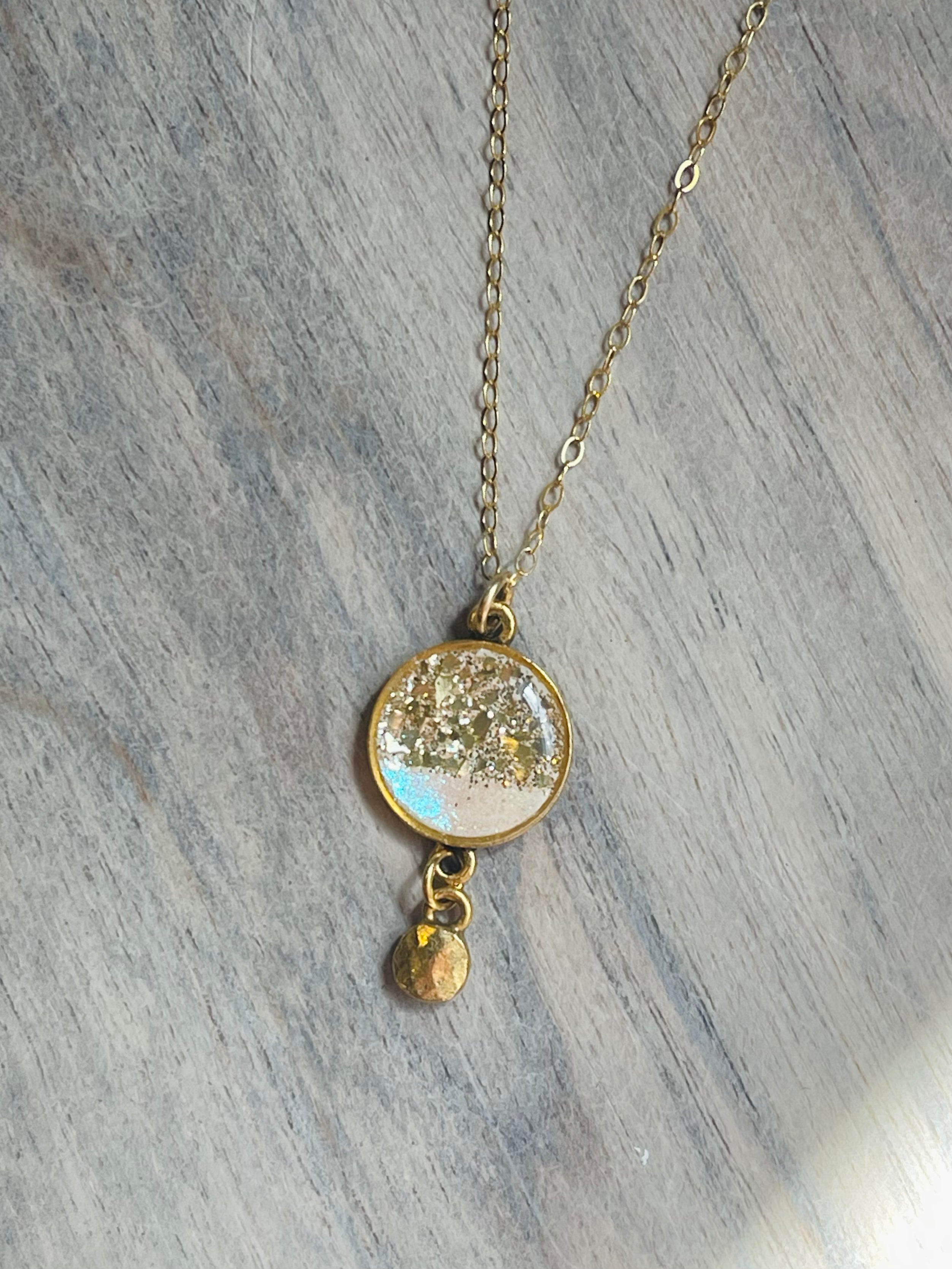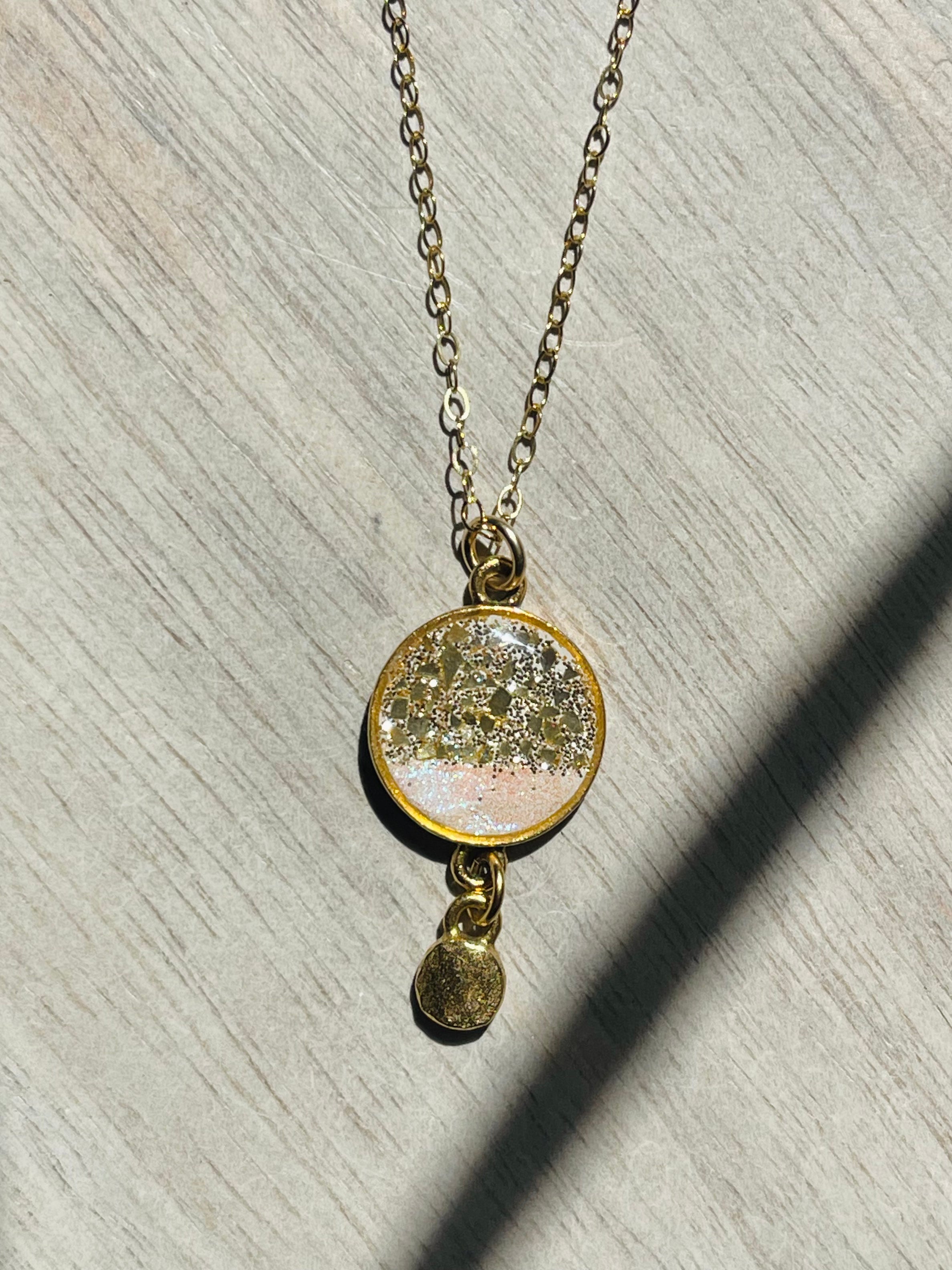 Circle Drop Gold + White Glitter Necklace by Rebecca Noel Designs