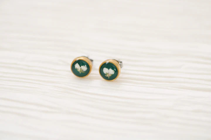 Circle Gold + White Baby's Breath Earrings by Rebecca Noel Designs