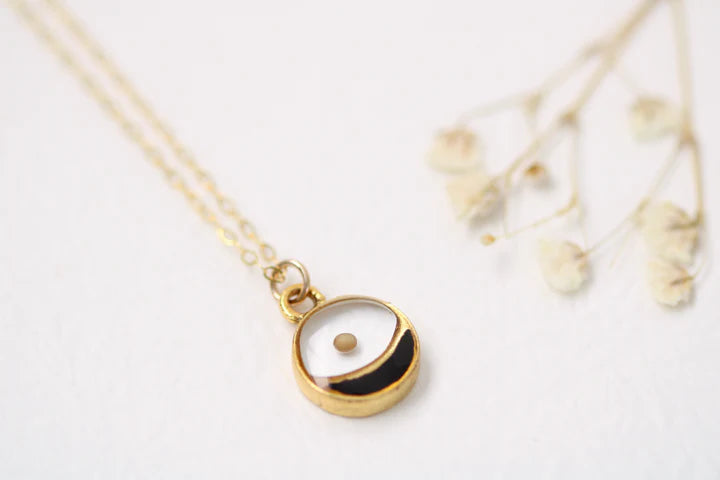 Circle Gold + White Baby's Breath Necklace by Rebecca Noel Designs