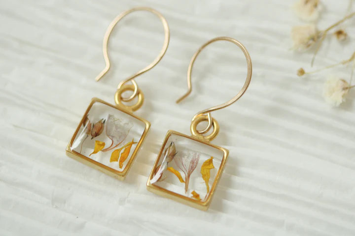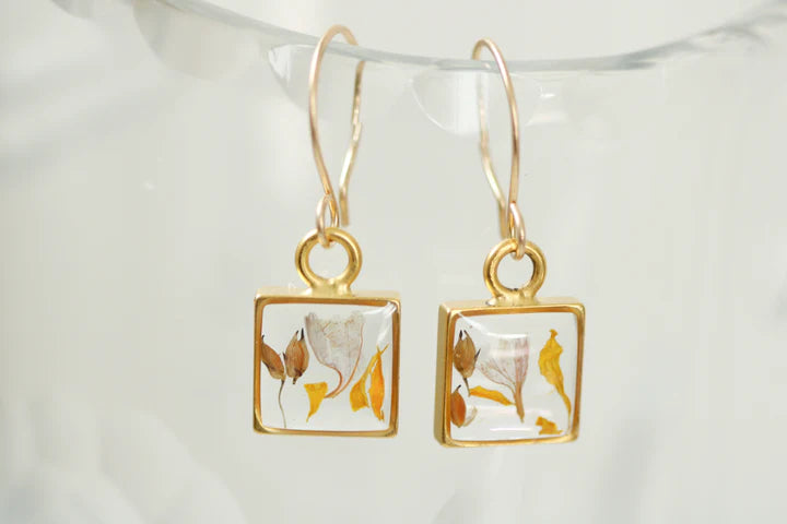 Square Gold Purple & Orange Flowers Earrings by Rebecca Noel Designs (Copy)