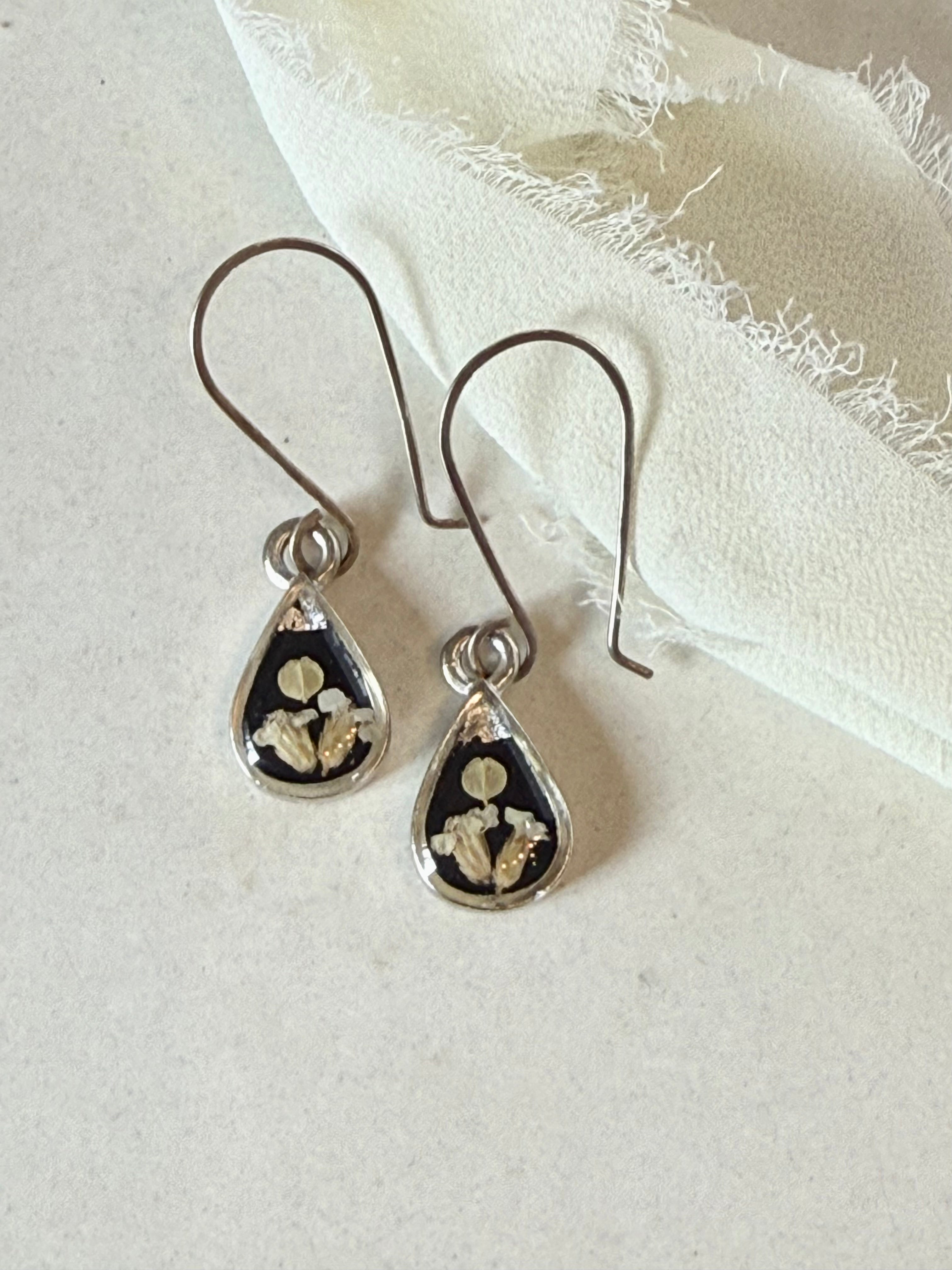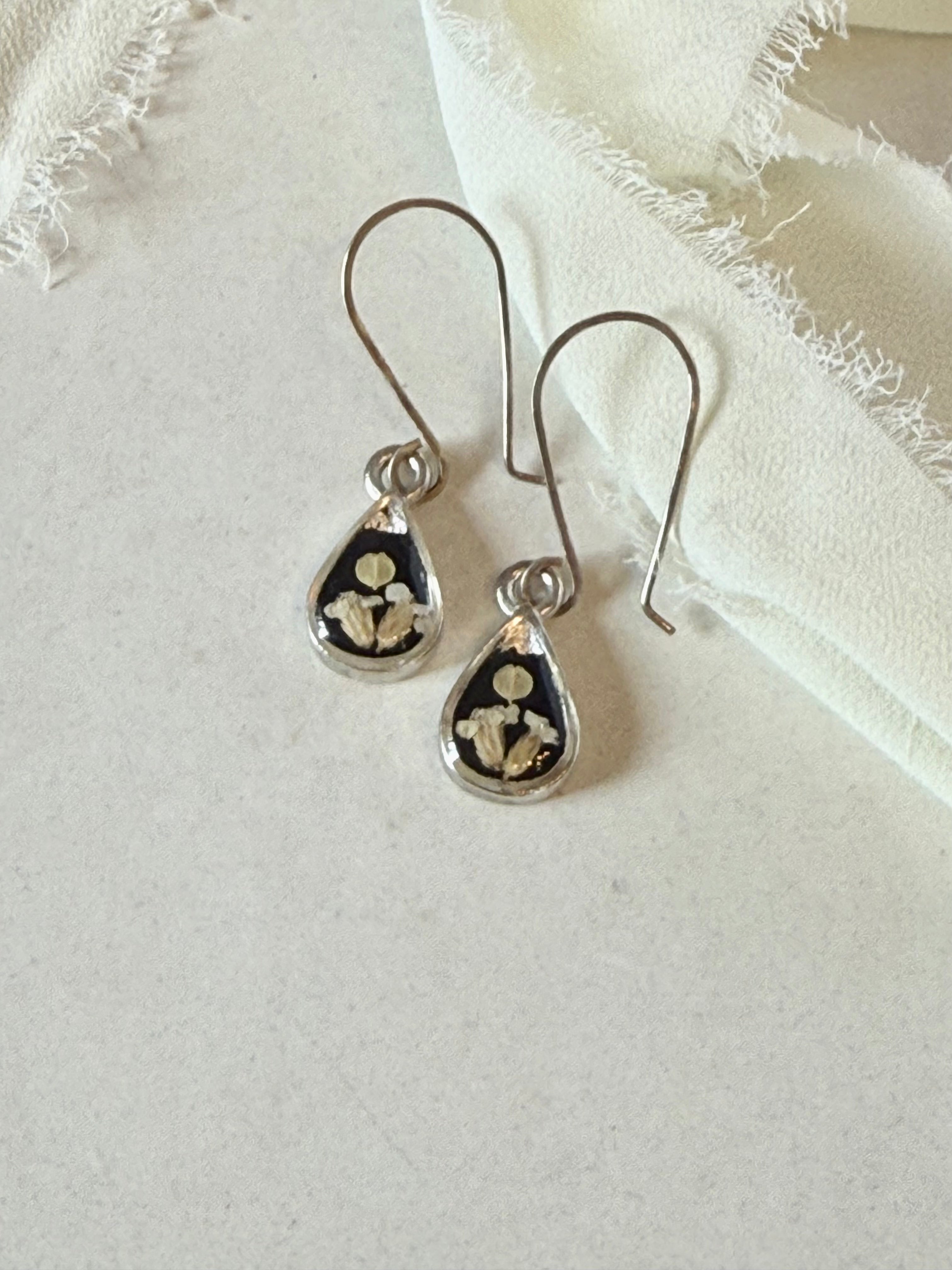 Teardrop Silver + Black Yarrow Earrings by Rebecca Noel Designs