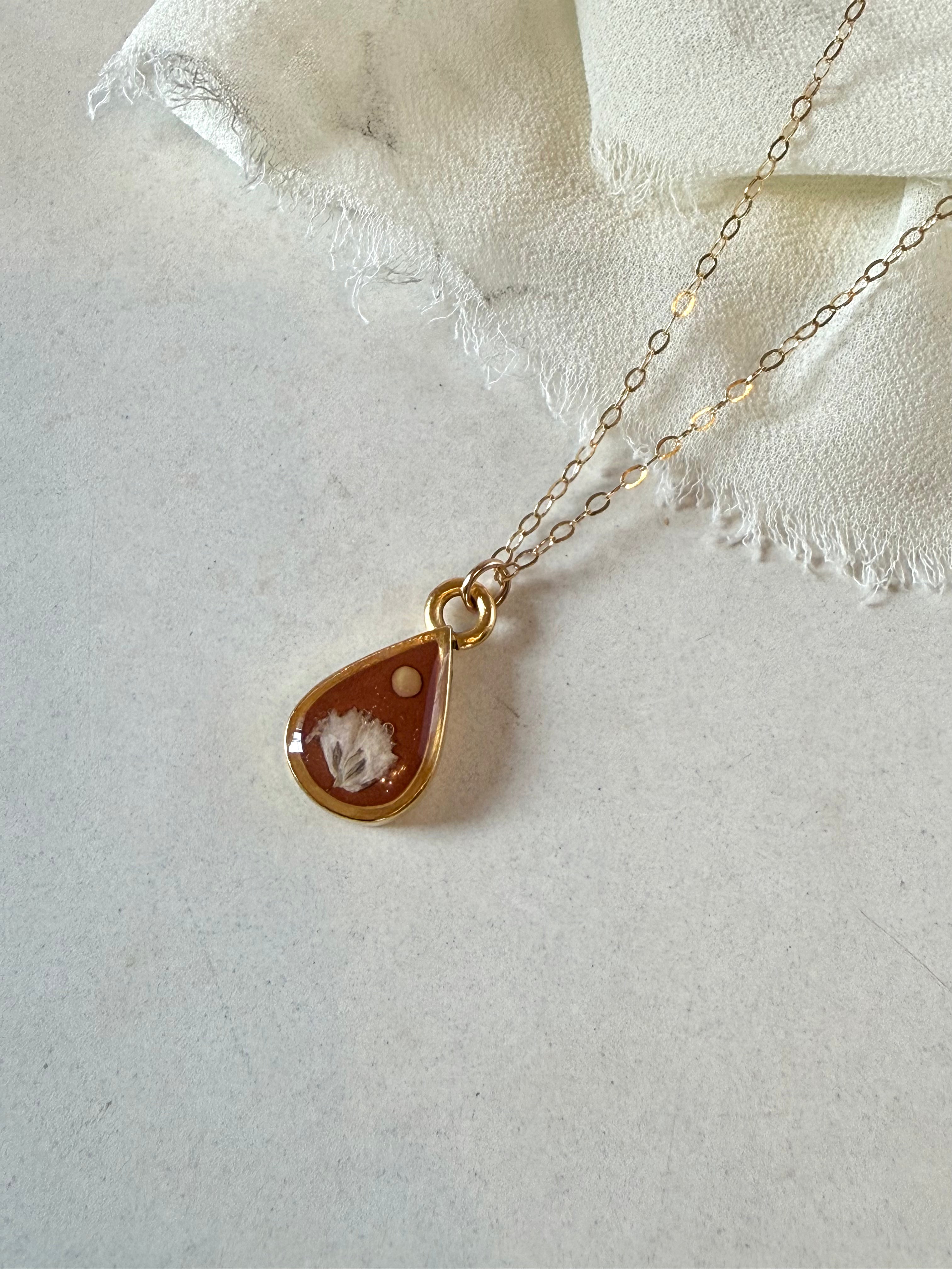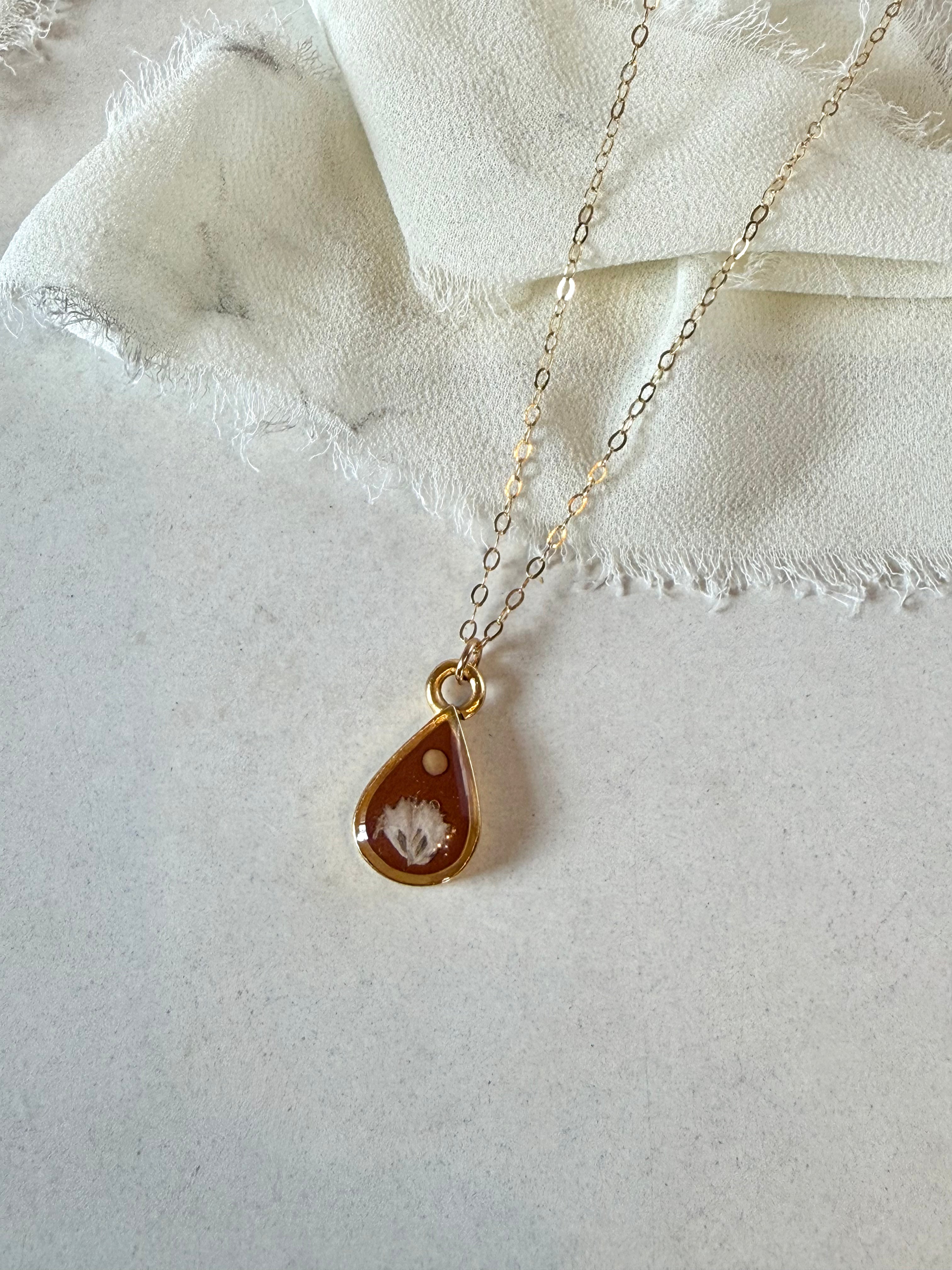 Teardrop Gold + White Baby's Breath Necklace by Rebecca Noel Designs