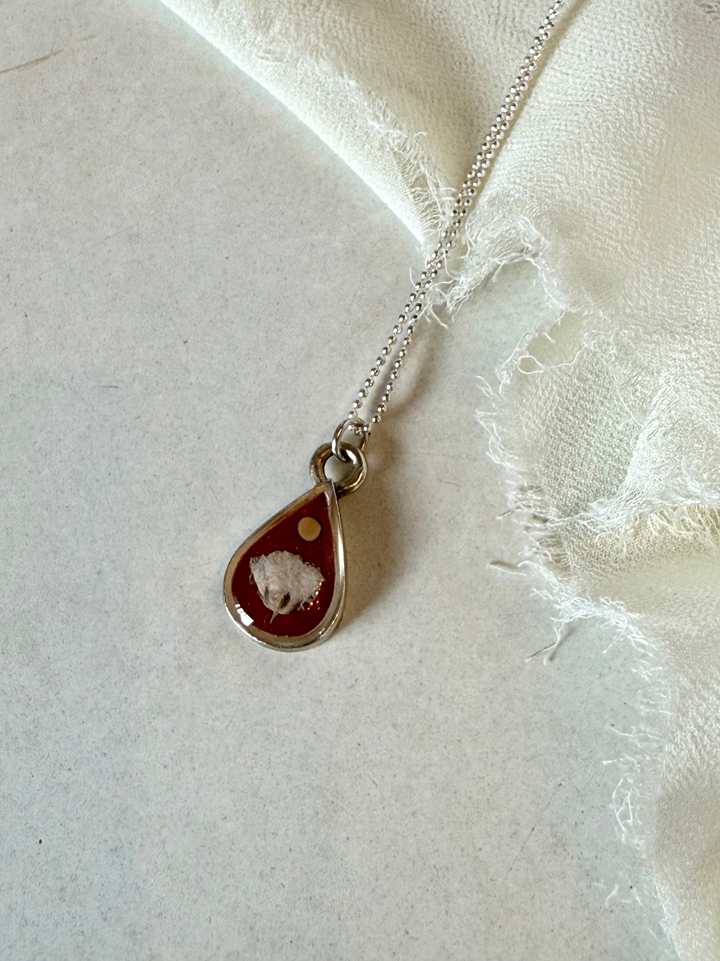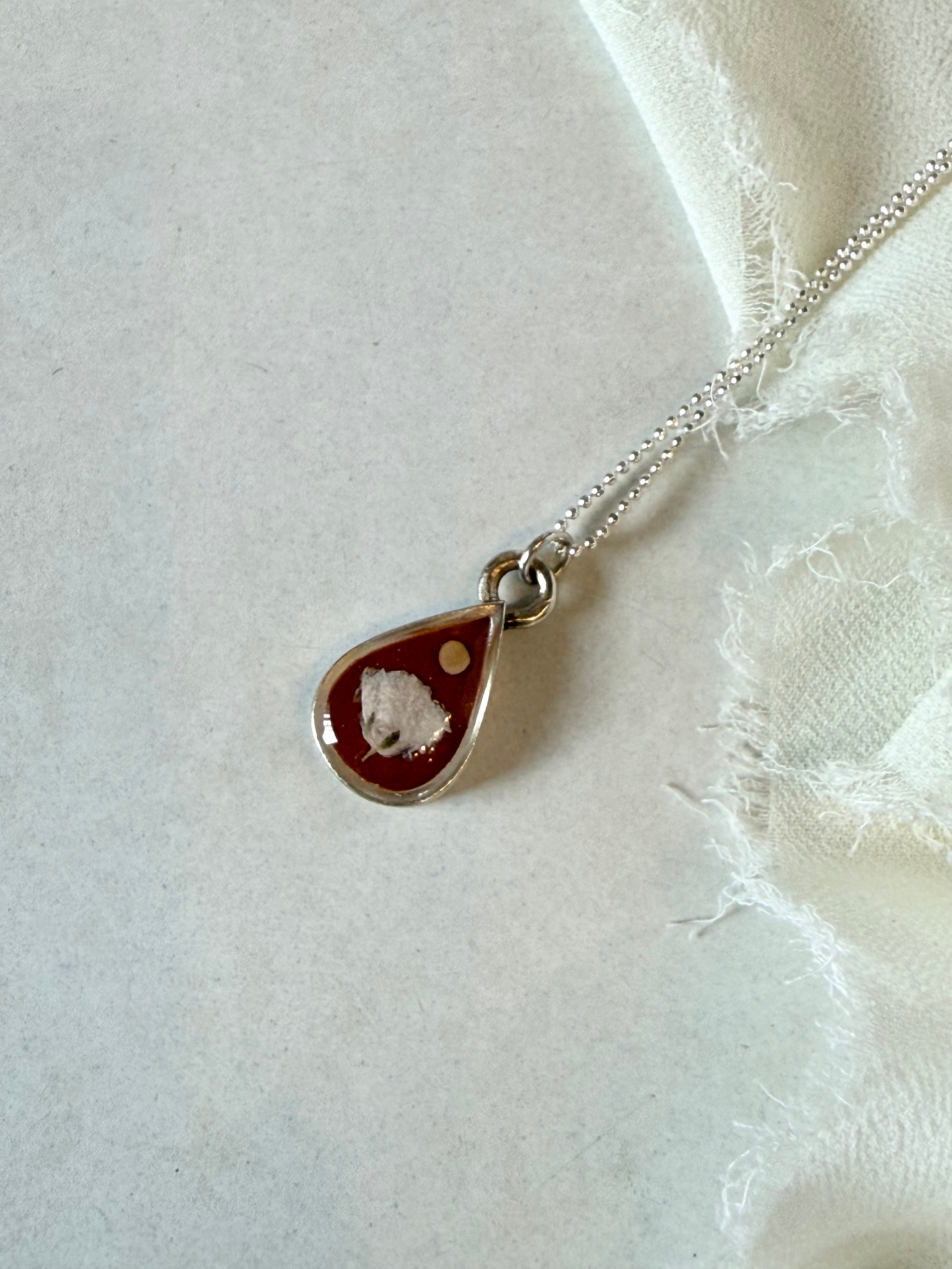 Teardrop Silver + Burgundy Mustard Seed QAL Necklace by Rebecca Noel Designs