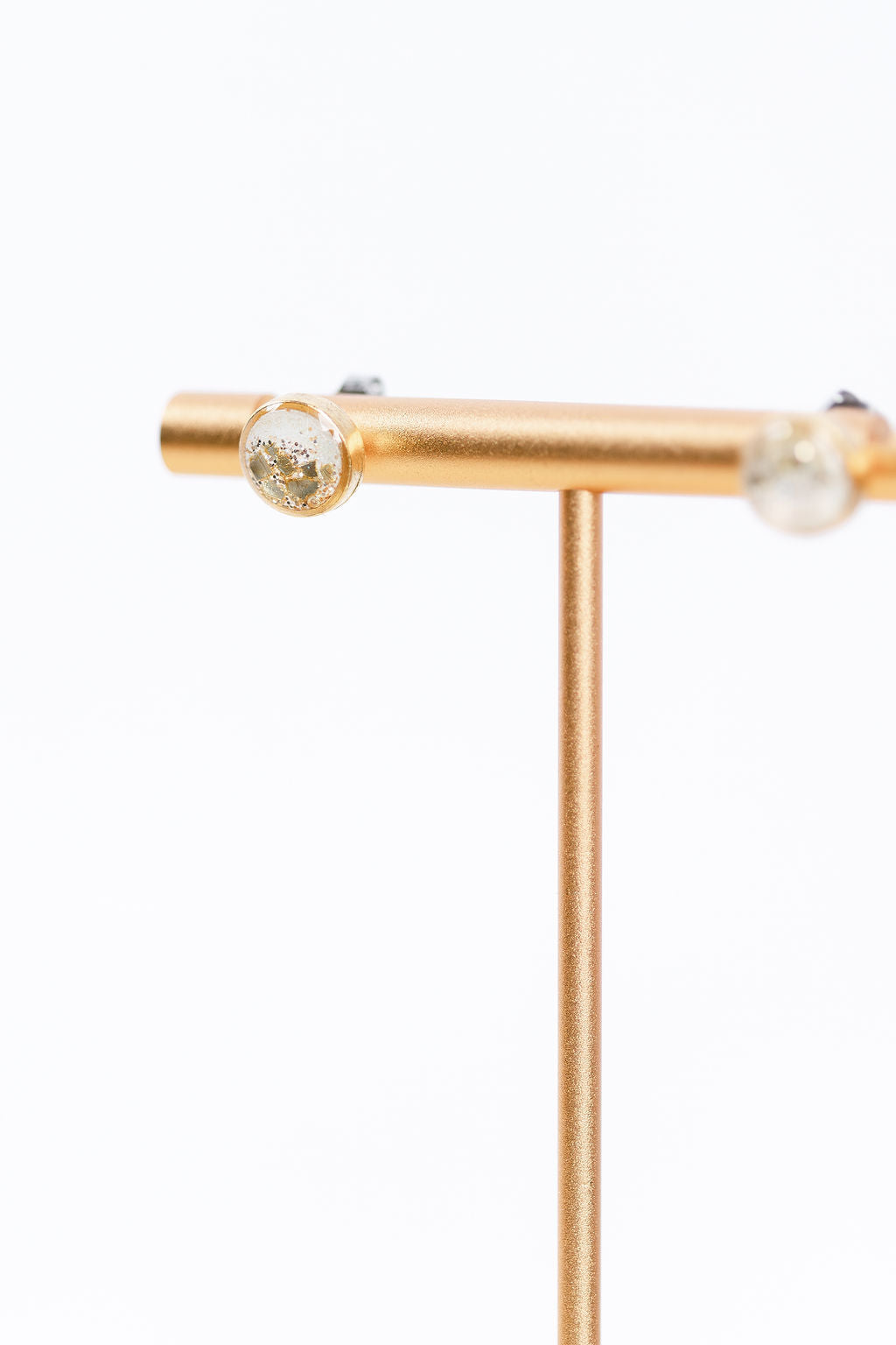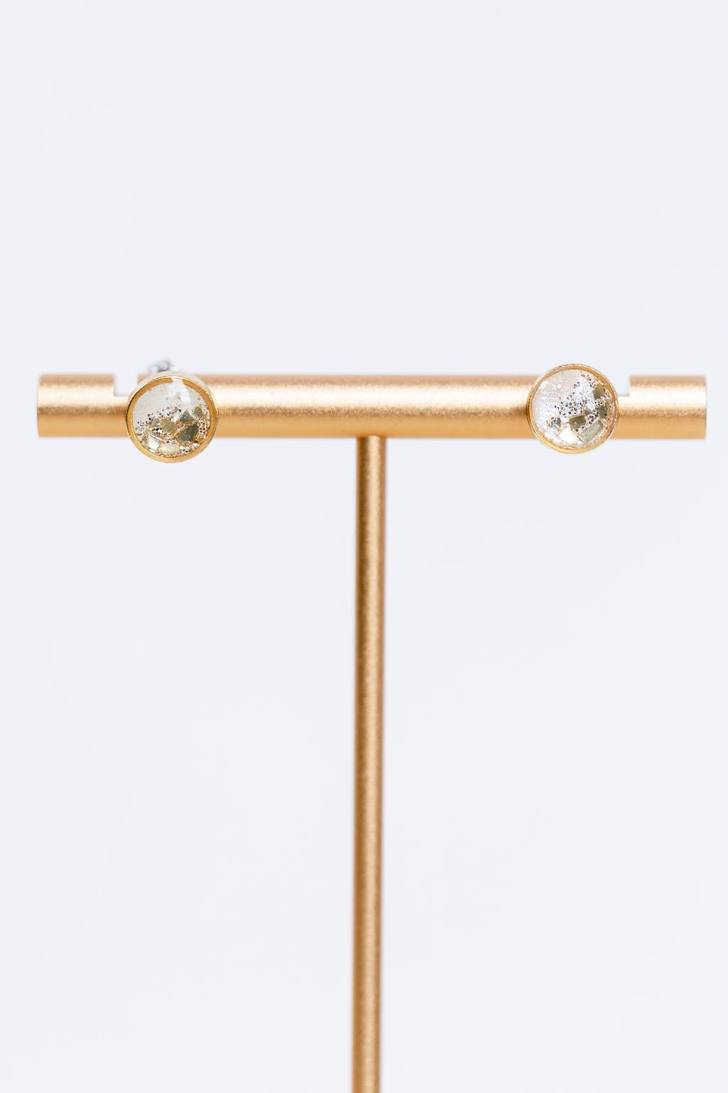 Stud Gold + White Shimmer Earrings by Rebecca Noel Designs