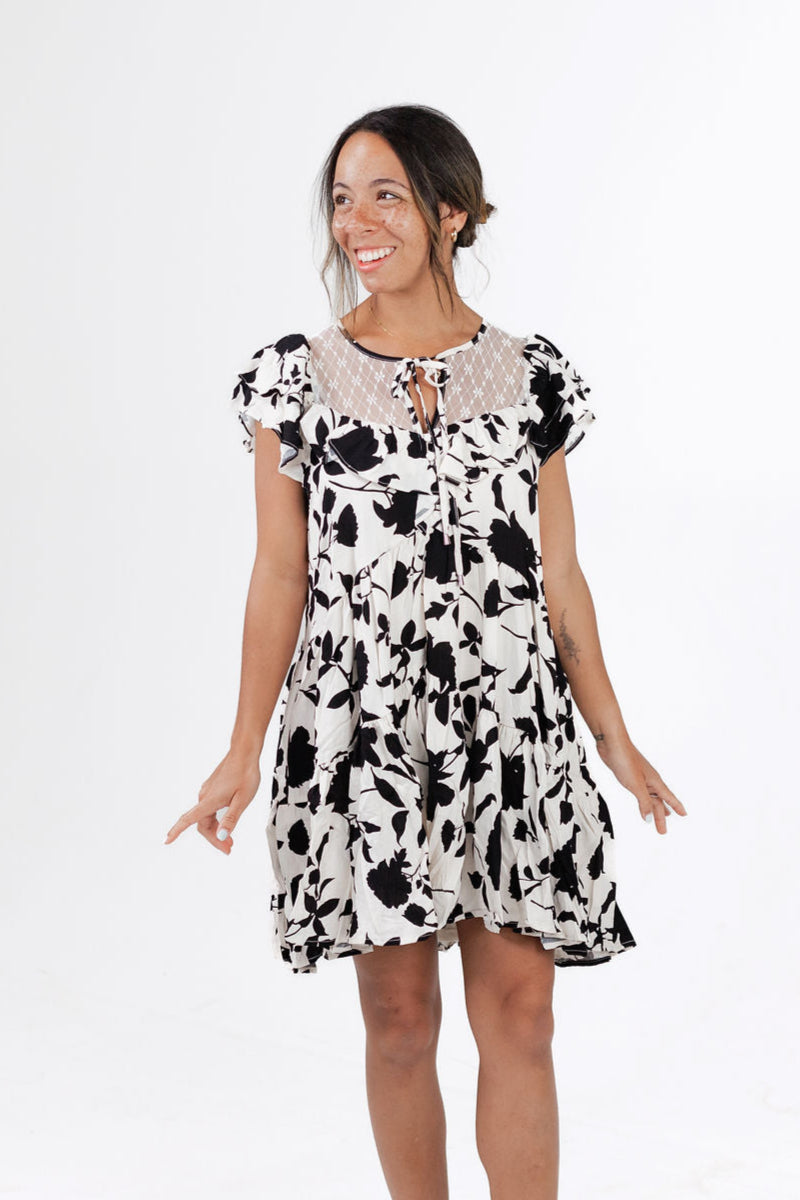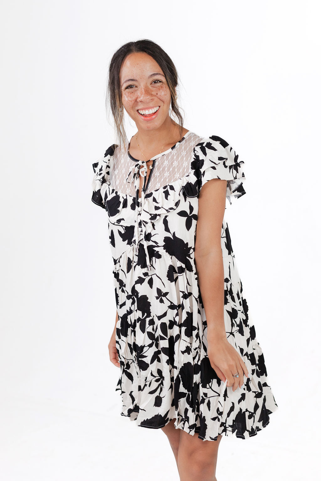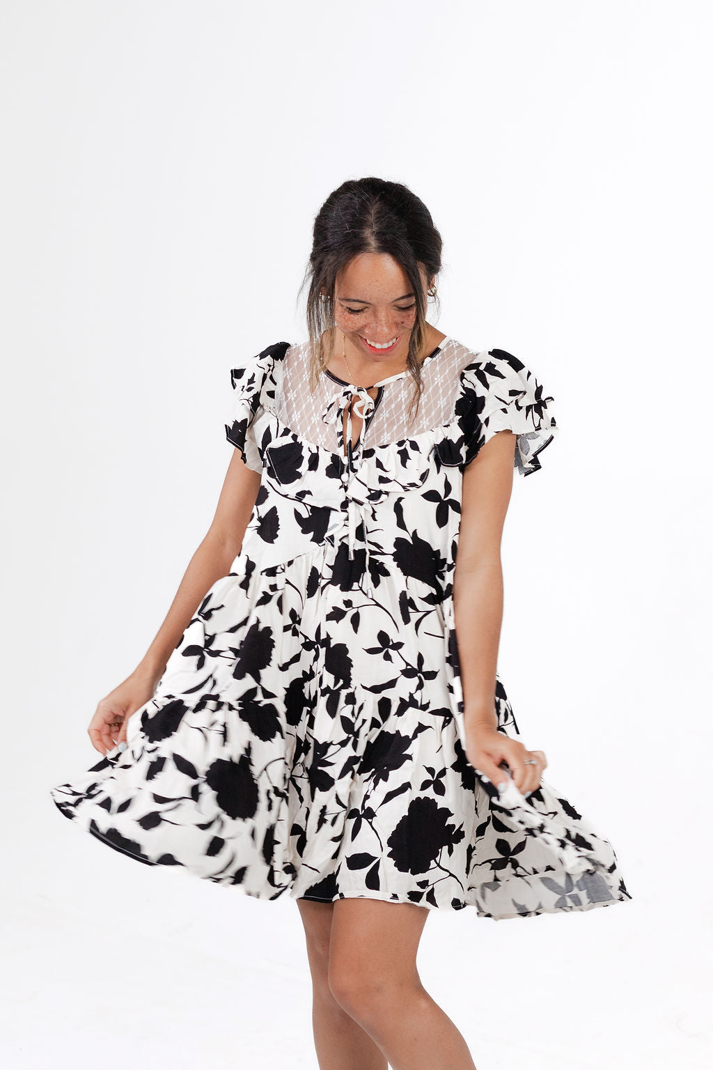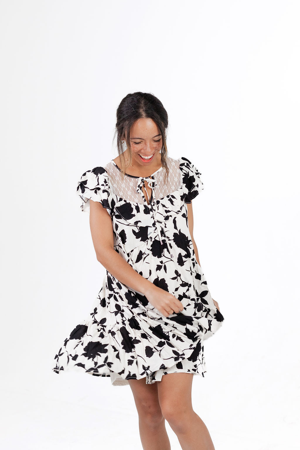 Parlour Cream + Black Ruffle Sleeve Mini Dress