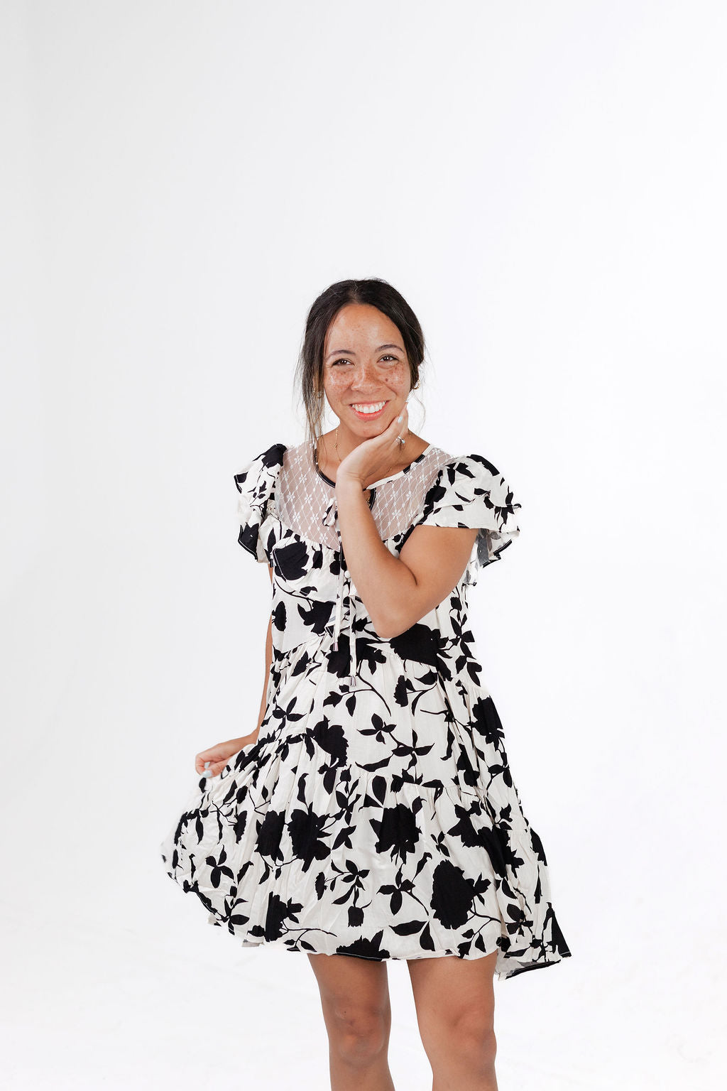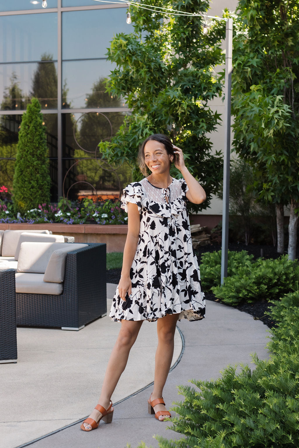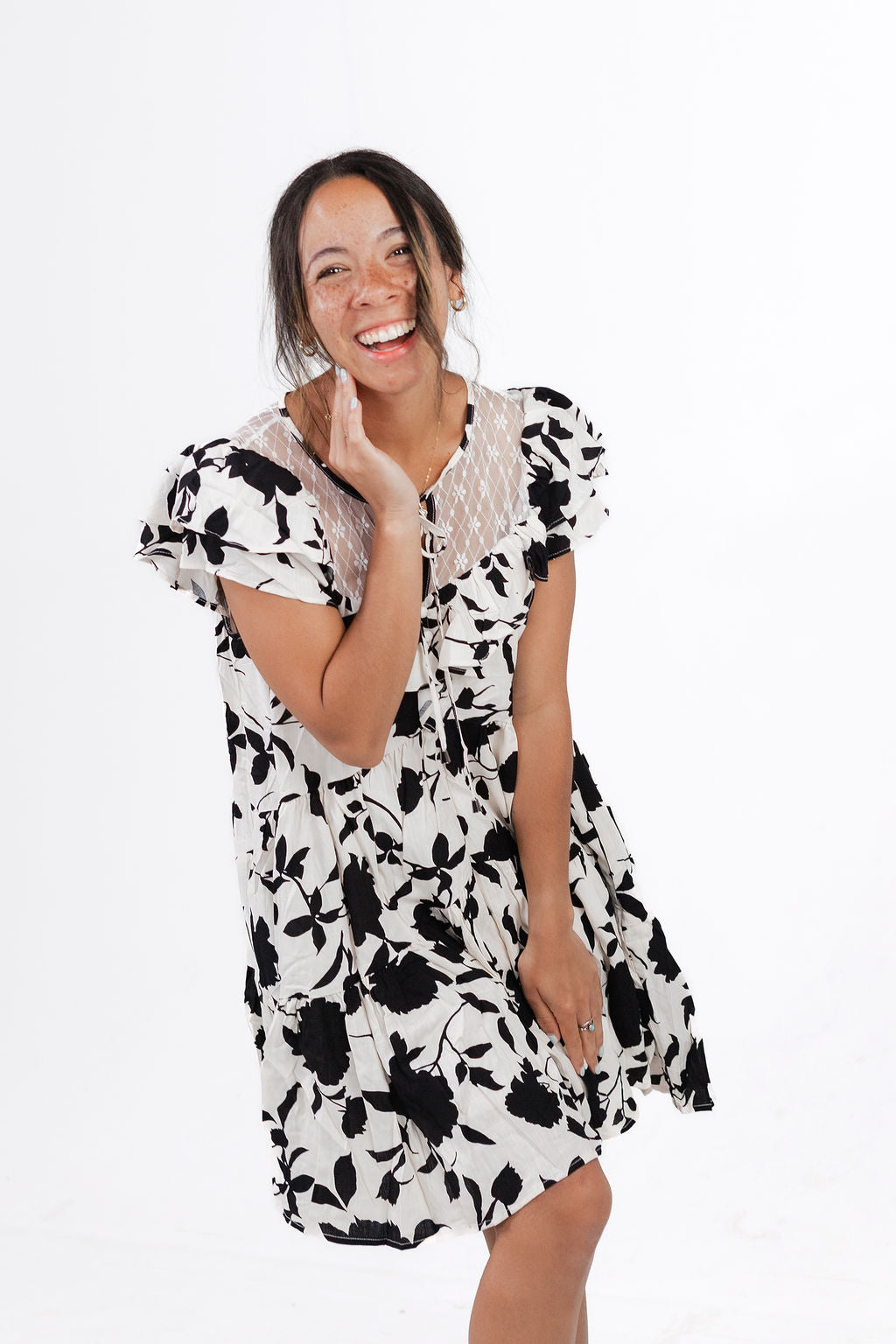 Parlour Cream + Black Ruffle Sleeve Mini Dress