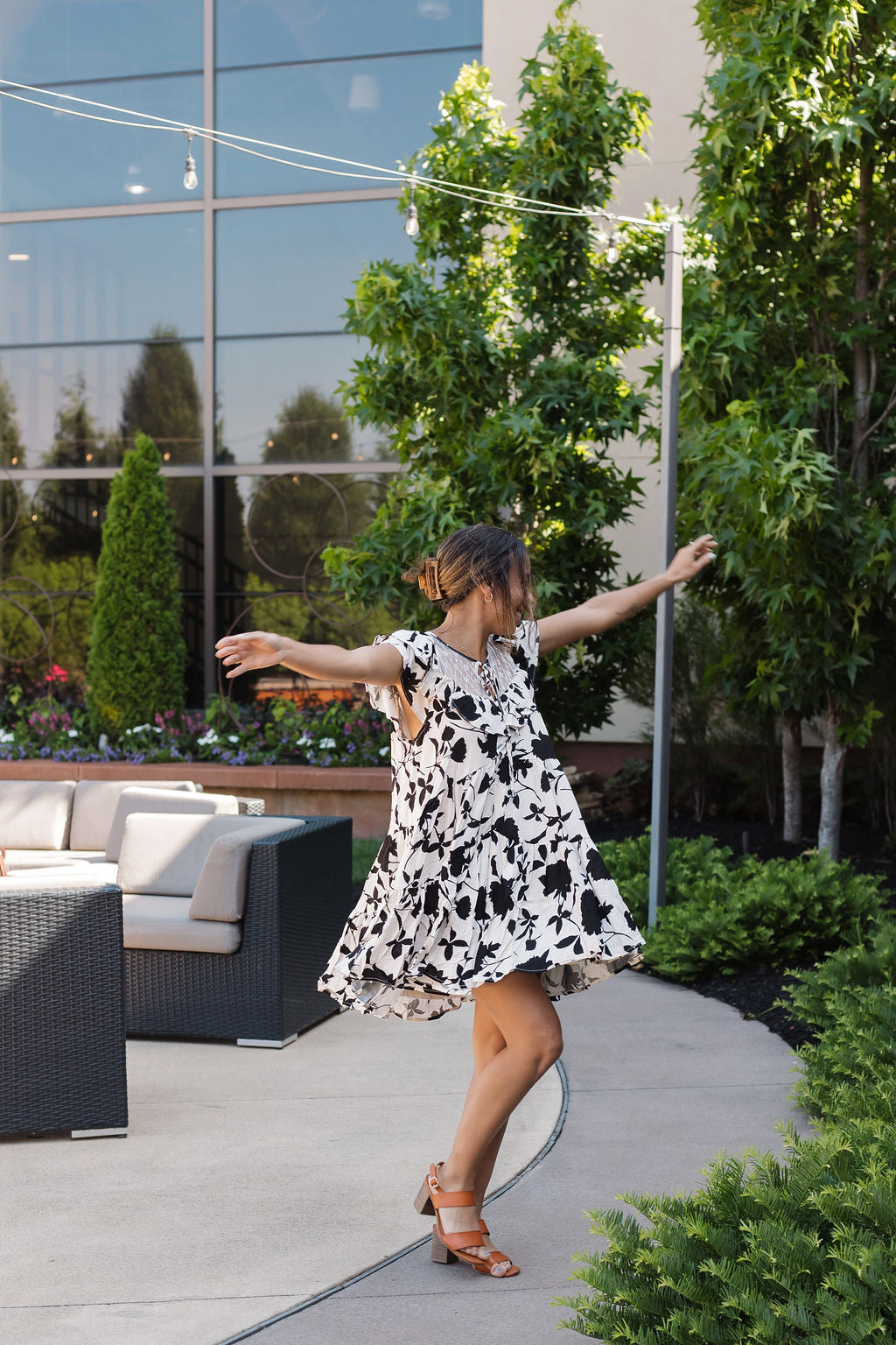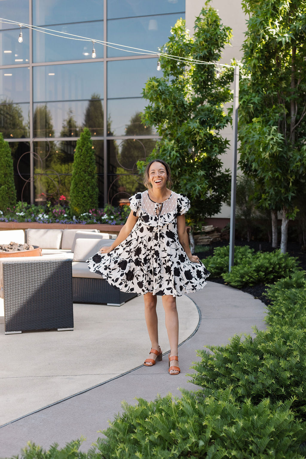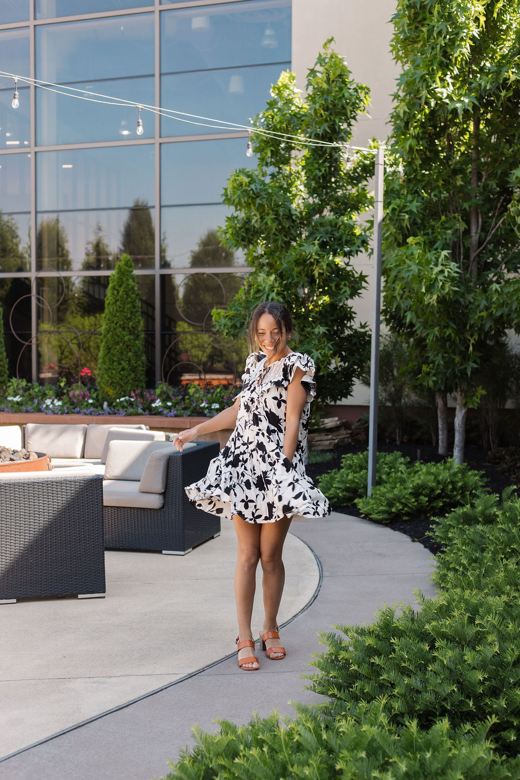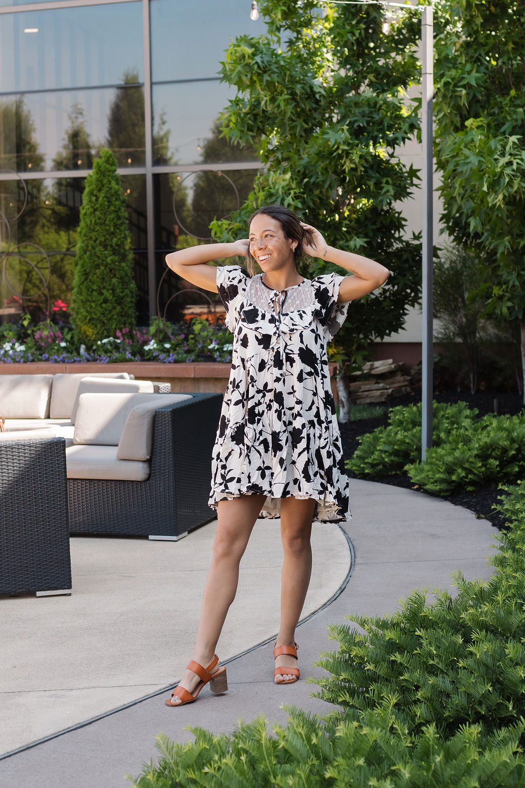 Parlour Cream + Black Ruffle Sleeve Mini Dress