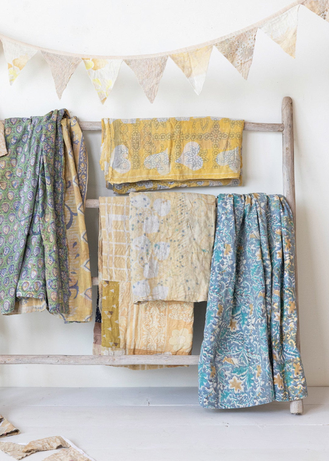 Add a touch of vintage style to your home decor with our Vintage Printed Cotton Kantha Reversible Throw w/ Hand-Embroidered Kantha Stitch! This throw features a unique design and is made from soft and durable cotton. Not only does it add a pop of color to your space, but it is also versatile and reversible.