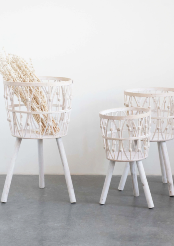 Whitewashed Bamboo Footed Baskets (Pickup Only)