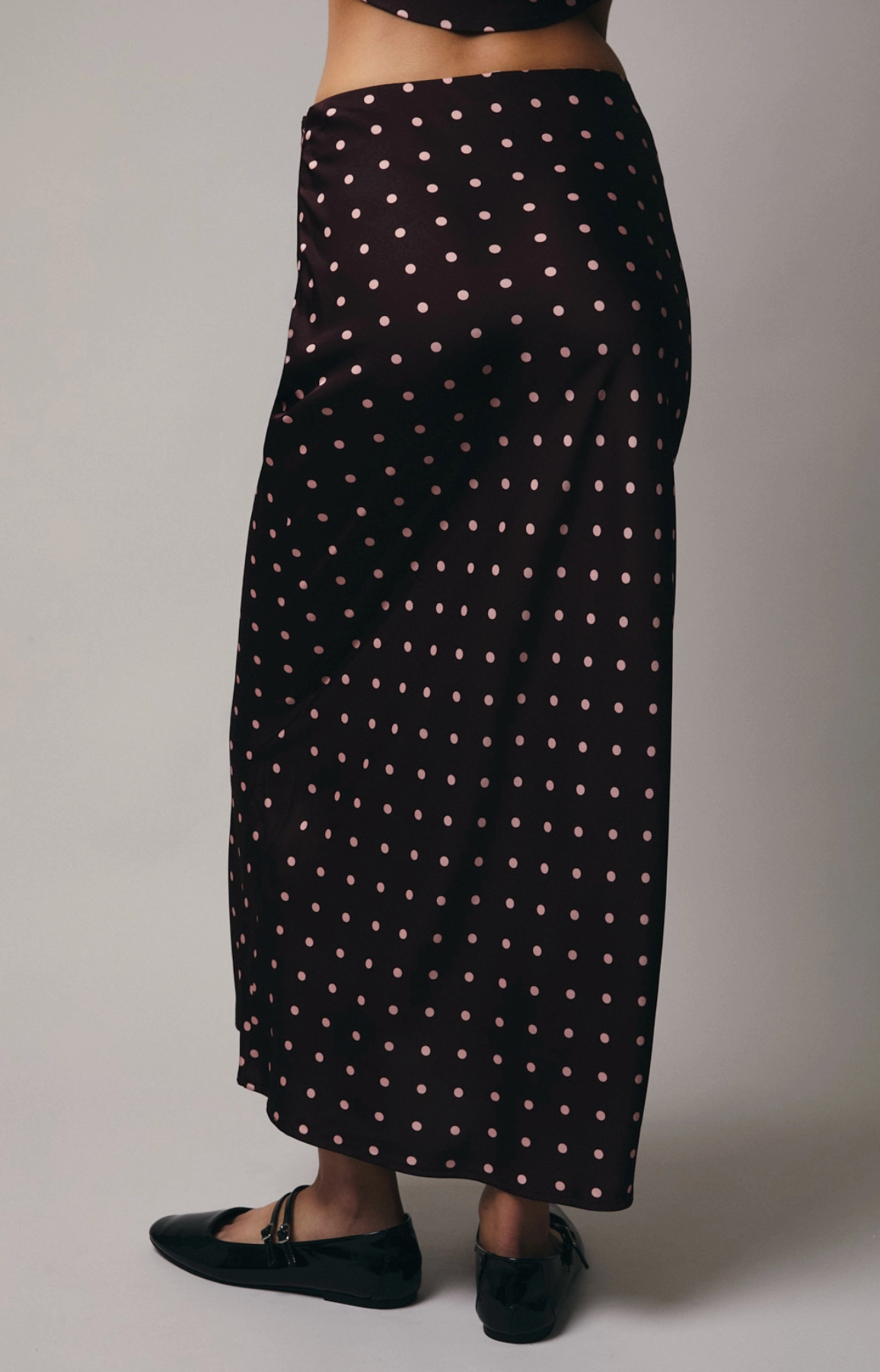 Slip into effortless elegance with this charming long panel skirt featuring a delicate dotted satin finish. The elastic waist ensures a comfortable, flattering fit that moves with you throughout your day, while the full length silhouette offers a sophisticated touch to any outfit. Perfect for dressing up or down, this versatile piece in rich brown tones pairs beautifully with everything from casual tees to polished blouses.