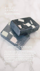 Our Detox Charcoal Bar is special. A Skin Foodie Favorite. Formulated to target acne and promote a balanced complexion. This potent soap harnesses the power of natural ingredients, including activated bamboo charcoal and French rose clay, to deeply cleanse, absorb excess oil, and remove impurities, making it an essential addition to your skincare routine.