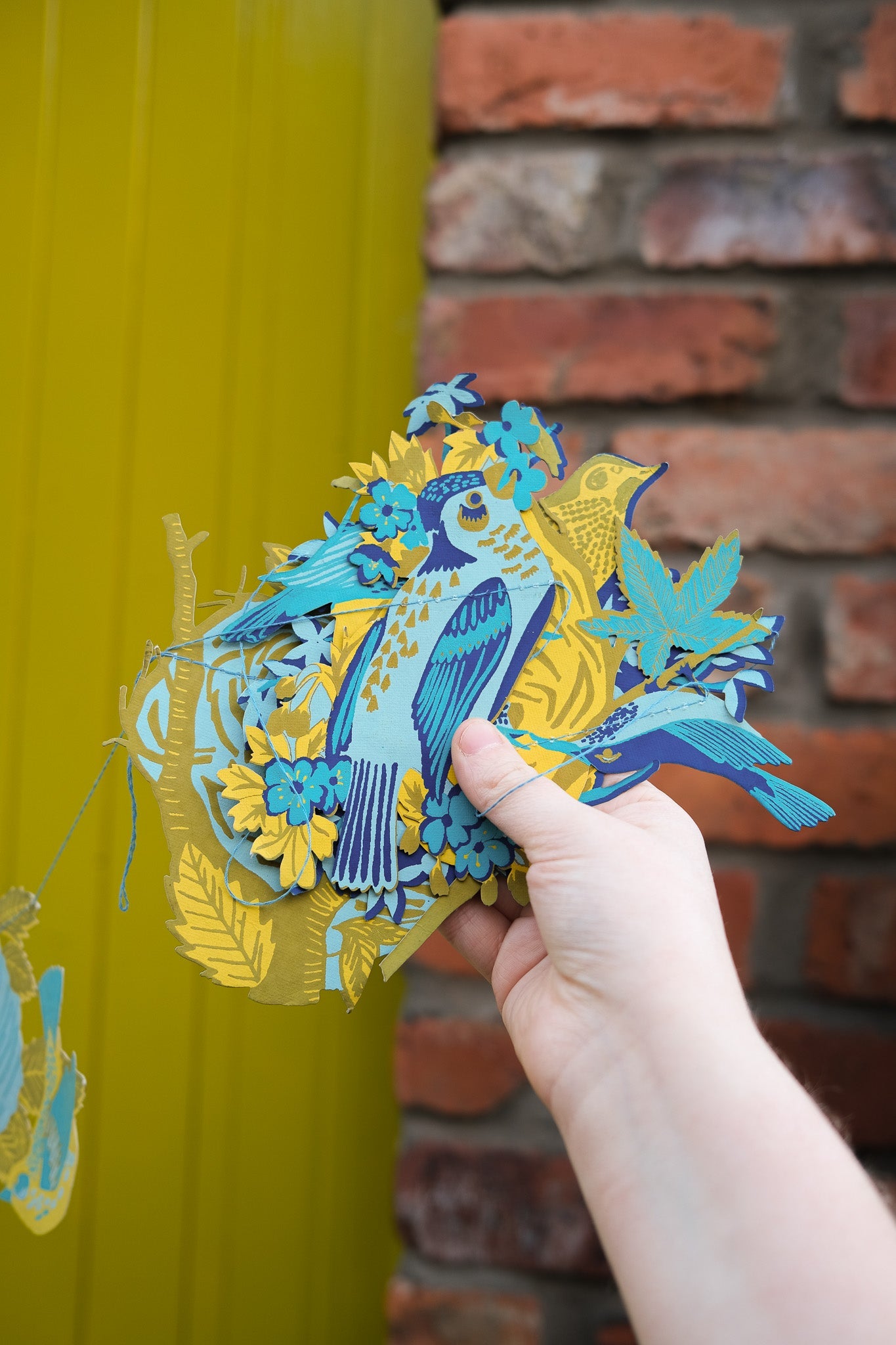 Bring the freshness of spring indoors with this charming garland featuring speckled eggs and delicate flowers nestled within foraged twigs. Perfect for springtime celebrations or year-round nature-inspired home decor.