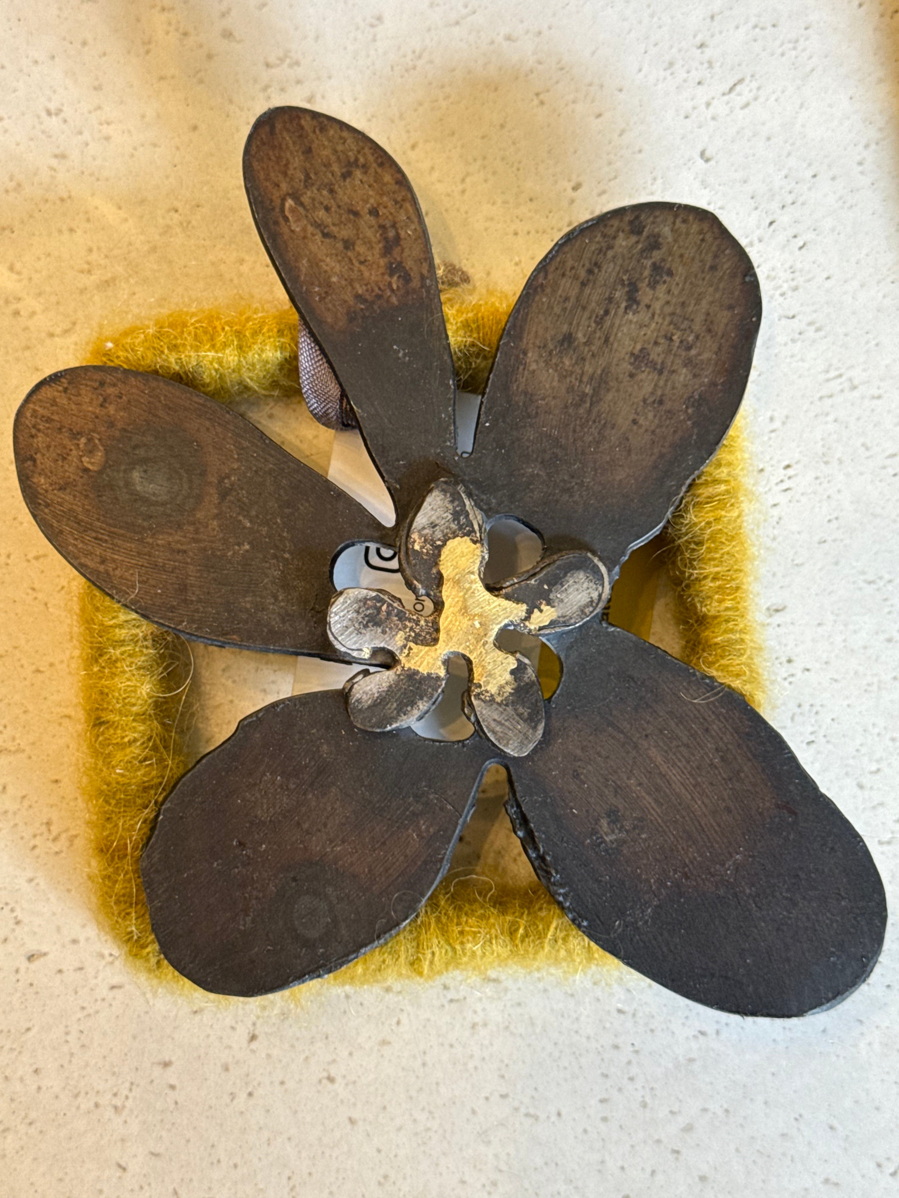 Handmade metal work by Form: by Cindy Schnell. Beautifully welded recycled steel with brazing and wool fiber. Dimensions are 5" x 4" x 1".