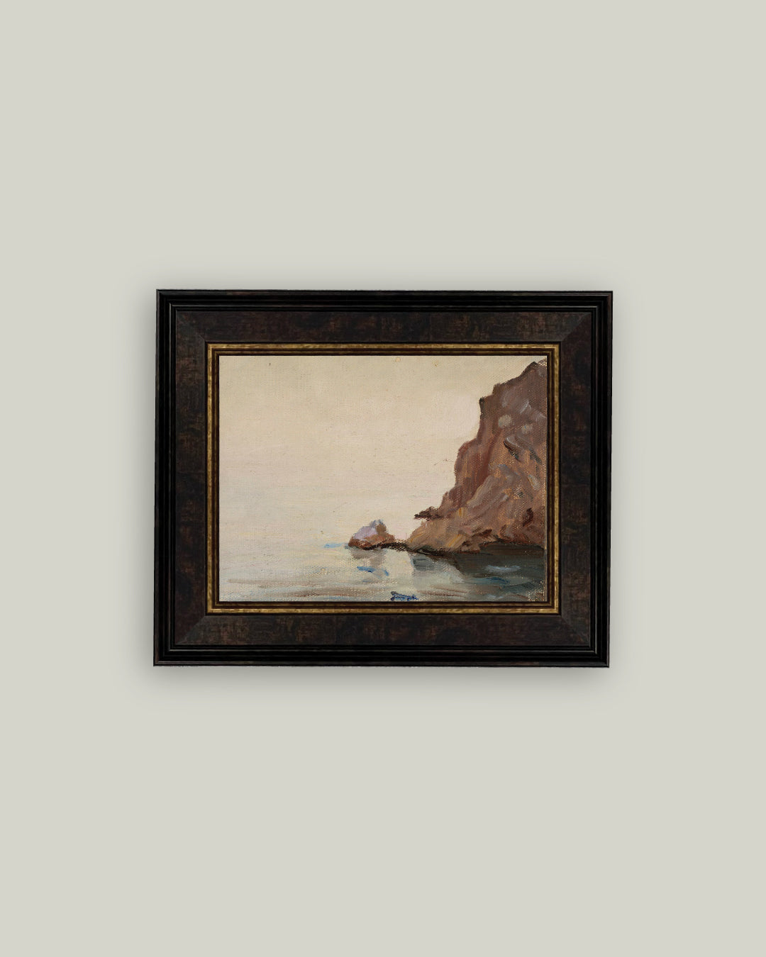 This stunning Ocean Cliffs artwork by Jan Ciaglinski captures coastal beauty in a 10x8 inch framed print with raw canvas and antique frame details.