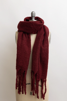 Burgundy - Cozy Knit Scarf with Tassels