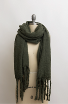 Wrap yourself in warmth and style with this Cozy Knit Scarf featuring a soft, thick knit construction and fashionable tassel fringe. Perfect for fall and winter, the olive hue adds a classic touch to any cold-weather outfit. This versatile accessory provides effortless layering and comfort for those chilly days.