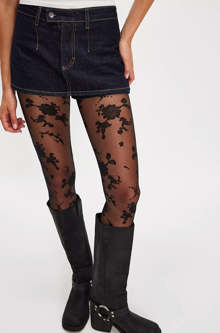 Add an effortless edgy touch to any outfit with these Free People flocked floral tights. Featuring sheer fabrication with delicate floral embroidery throughout, these tights offer the perfect femme finish for any style.