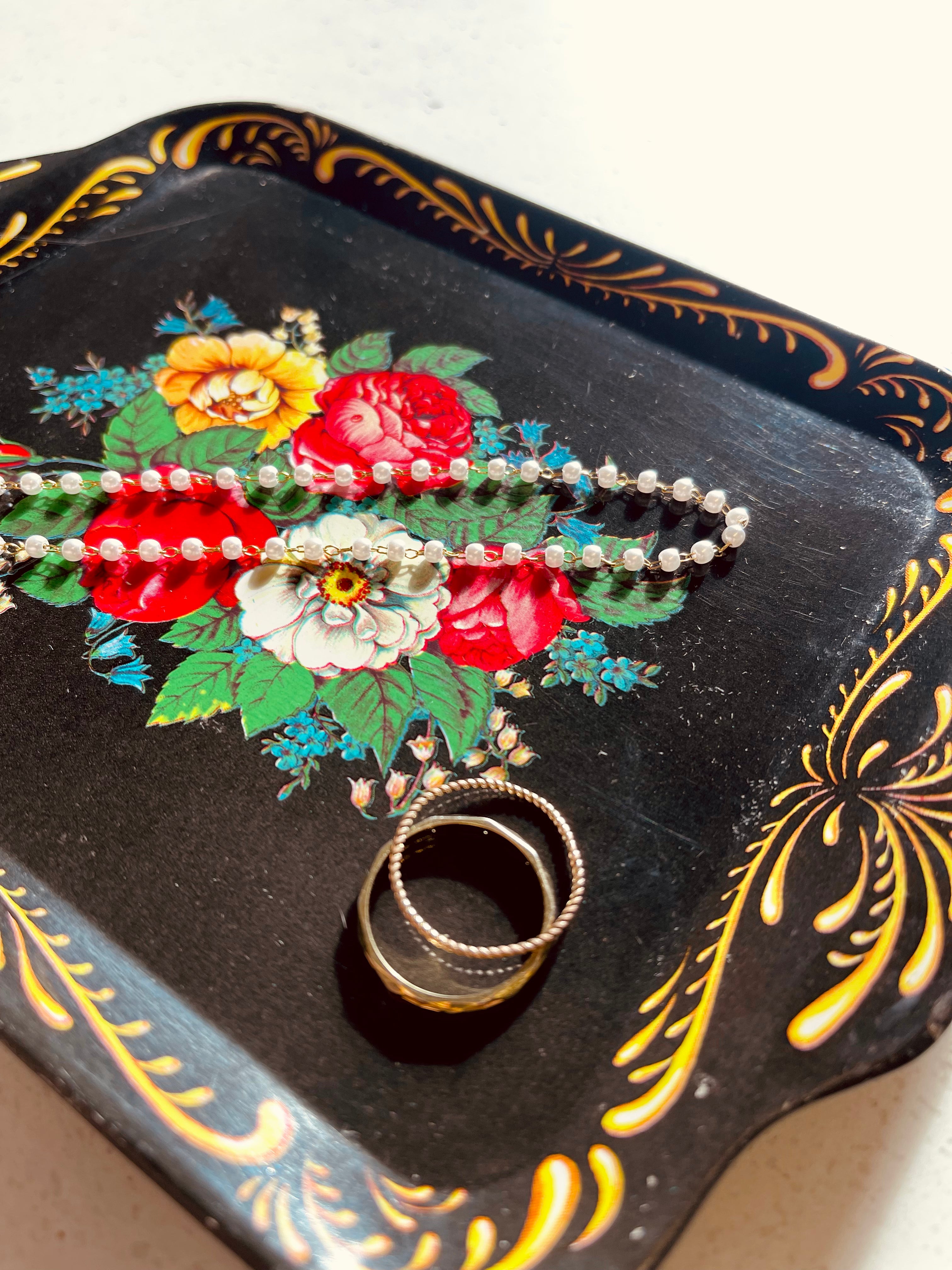 Elevate your home decor with our Artifact Vintage Metal Floral Mini Tray. This adorable 7.5" tray features a stunning vintage floral design that adds a touch of elegance to any space. Made of metal, it's both durable and stylish. Perfect for serving guests or as a decorative piece.