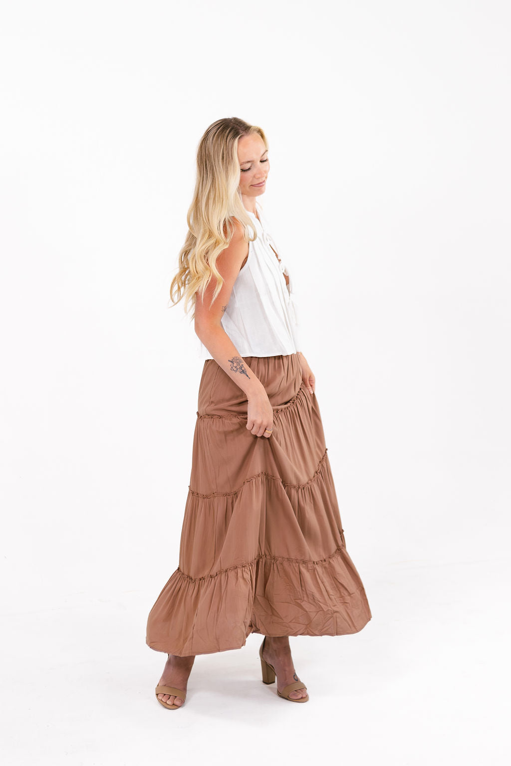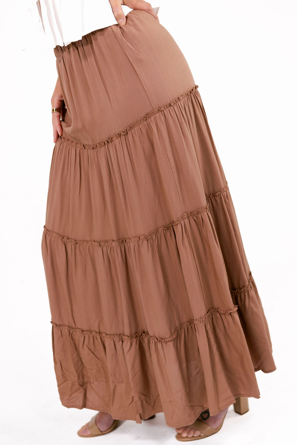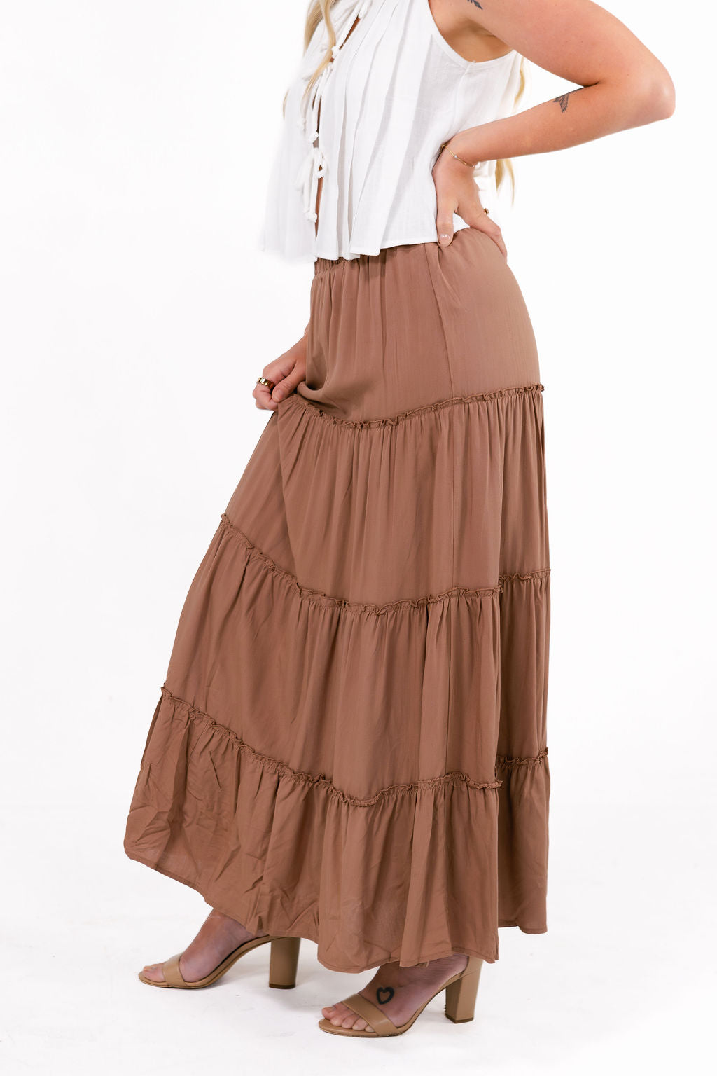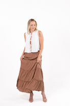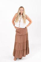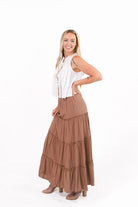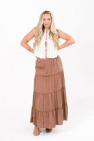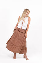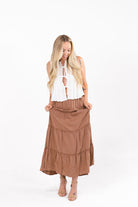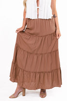 Charm Brown Tiered Maxi Skirt