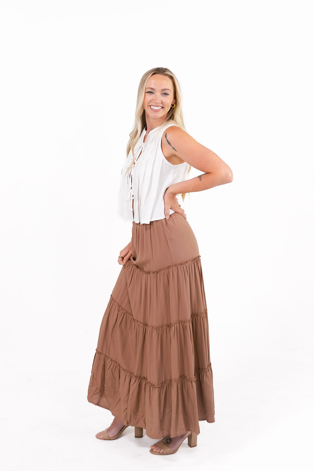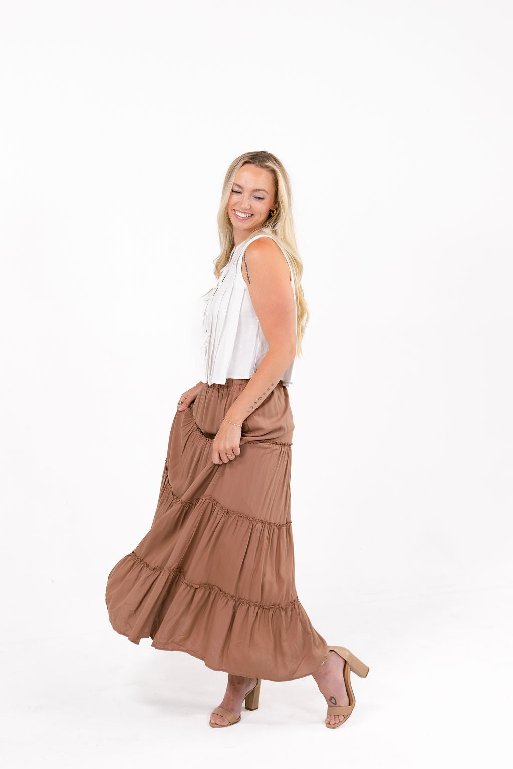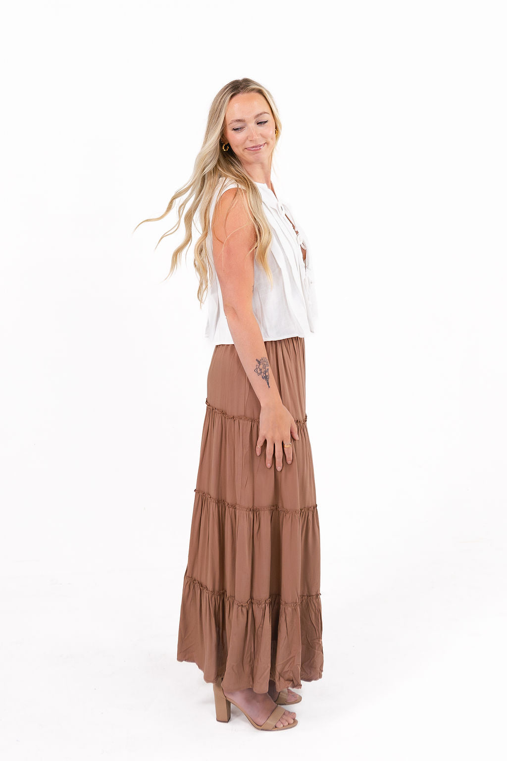 Charm Brown Tiered Maxi Skirt