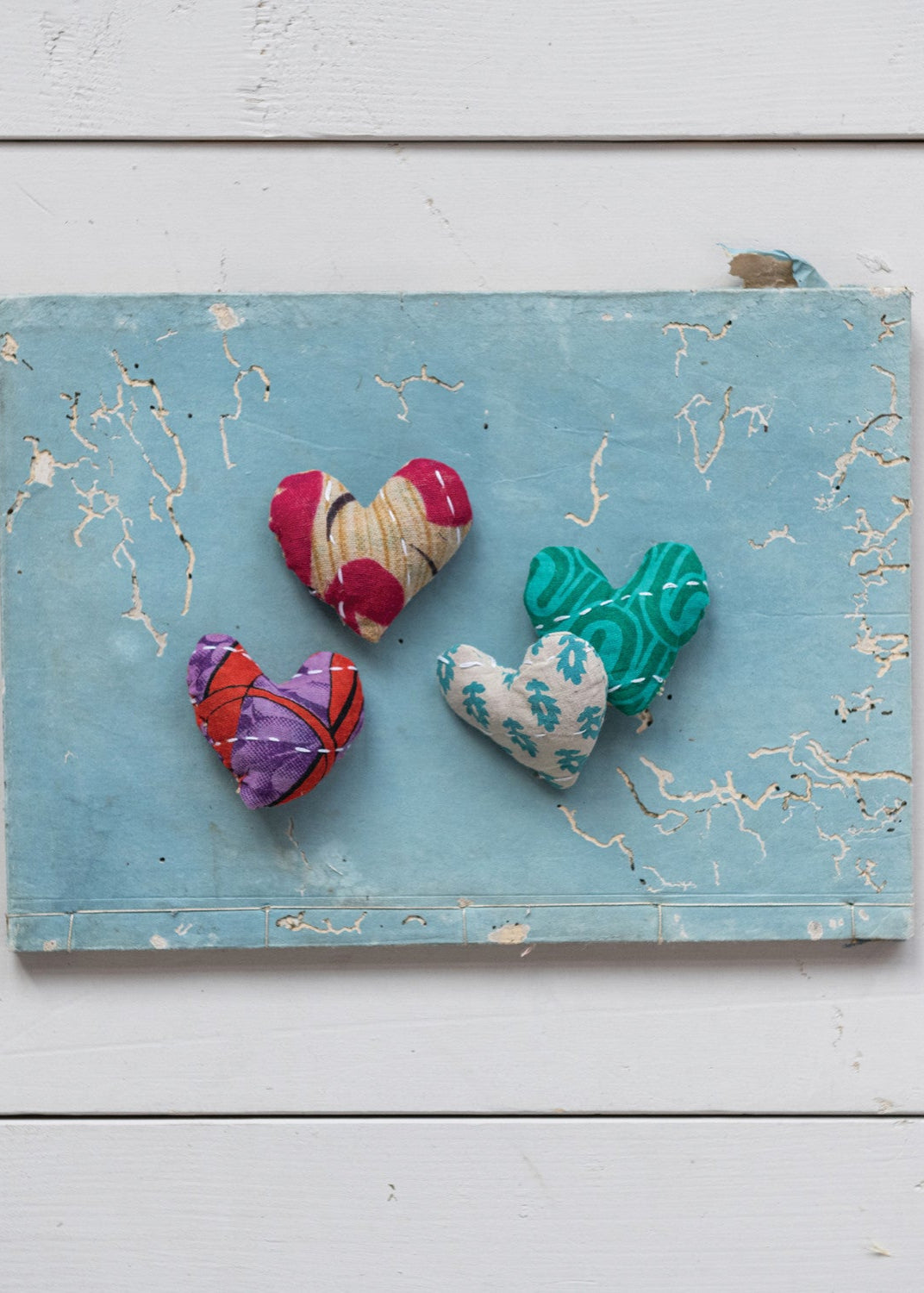 This Vintage Cotton Kantha Heart is a unique and playful addition to any home decor. Each piece is hand-embroidered with colorful Kantha stitching, making each one one-of-a-kind. Each heart comes in miscellaneous patterns.