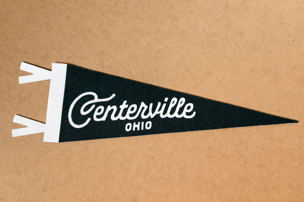 Your very own Centerville, Ohio felt pennant! Perfect keepsake flag for a bedroom, fort, tent, bike, or anywhere! These pennants are made of one solid piece of fabric. They're print our designs directly onto felt, one at a time at a small shop in Maine, USA.