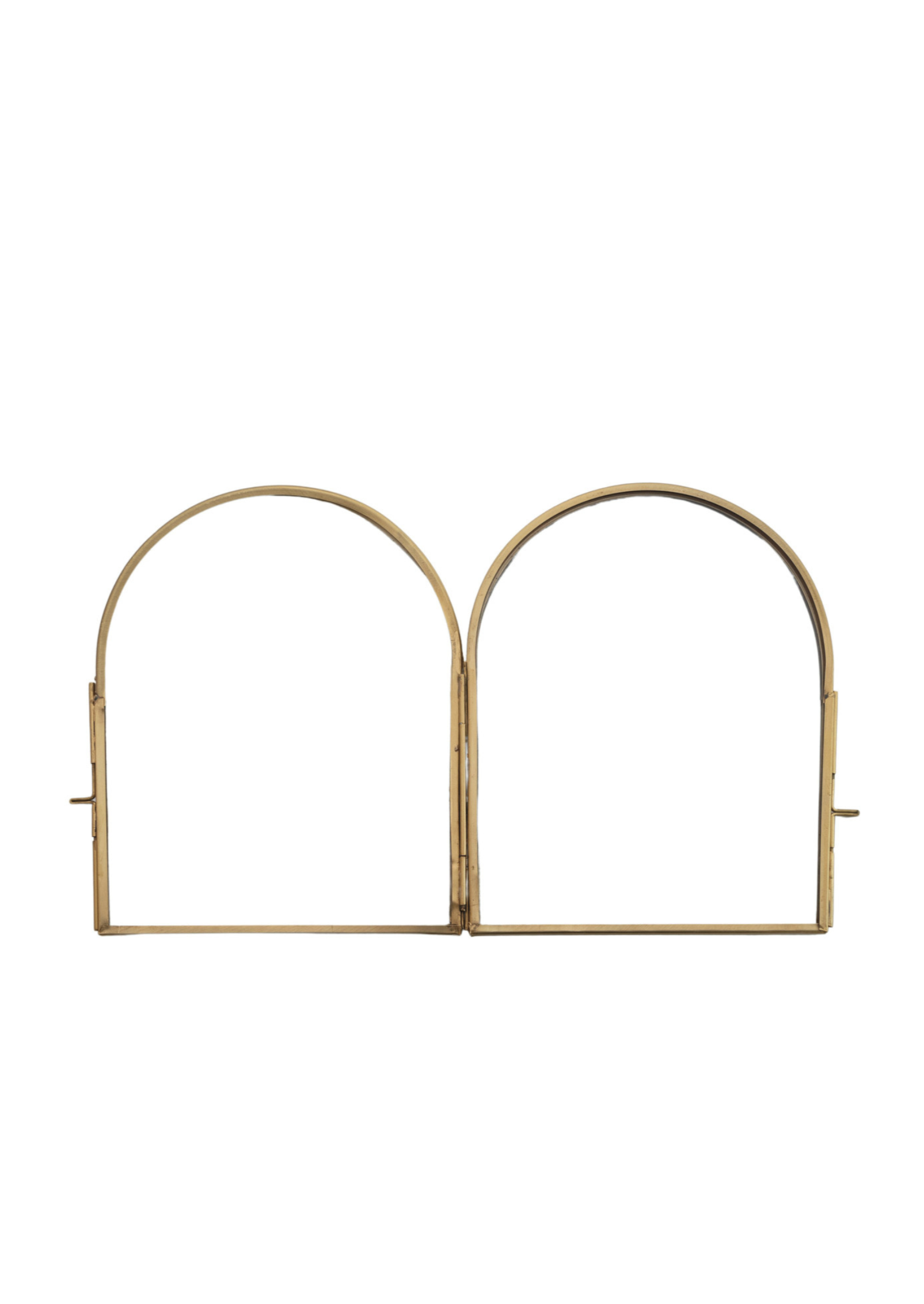 This Photo Frame is a masterpiece of craftsmanship, featuring a graceful arched top and a lustrous antique brass finish that complements its sleek glass front. The combination of brass and glass not only enhances the visual appeal of the frame but also ensures its longevity. Its generous proportions and arch design make it a striking piece that will draw the eye in any room.
