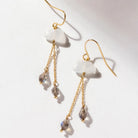 Moonstone is believed to calm and provide relief from emotional stress. It is also believed to provide protection and is associated with love. Cue the compliments with these sweetly stylish drop earrings. Inspired by natural elements, we paired cloud-shaped moonstone beads with petite labradorite stones, suspending them from delicate chains that mimic raindrops. The shimmering glow of moonstone and the mystical flash of labradorite create a captivating play of light, making these earrings perfect for day-to-night wear.