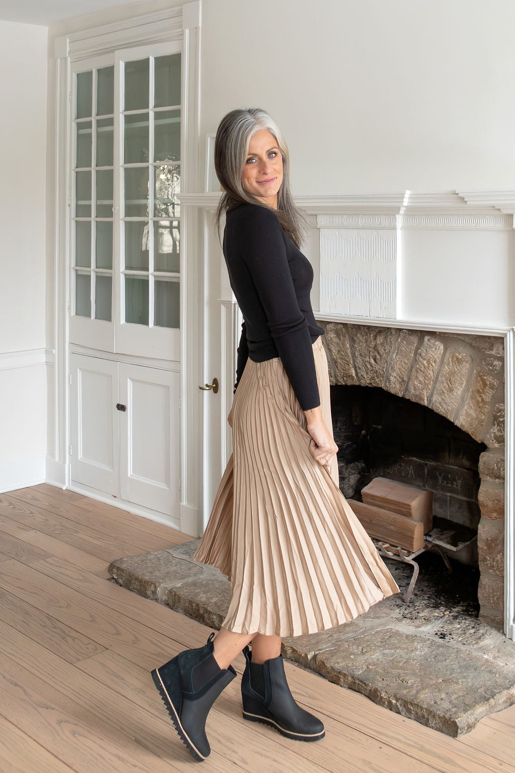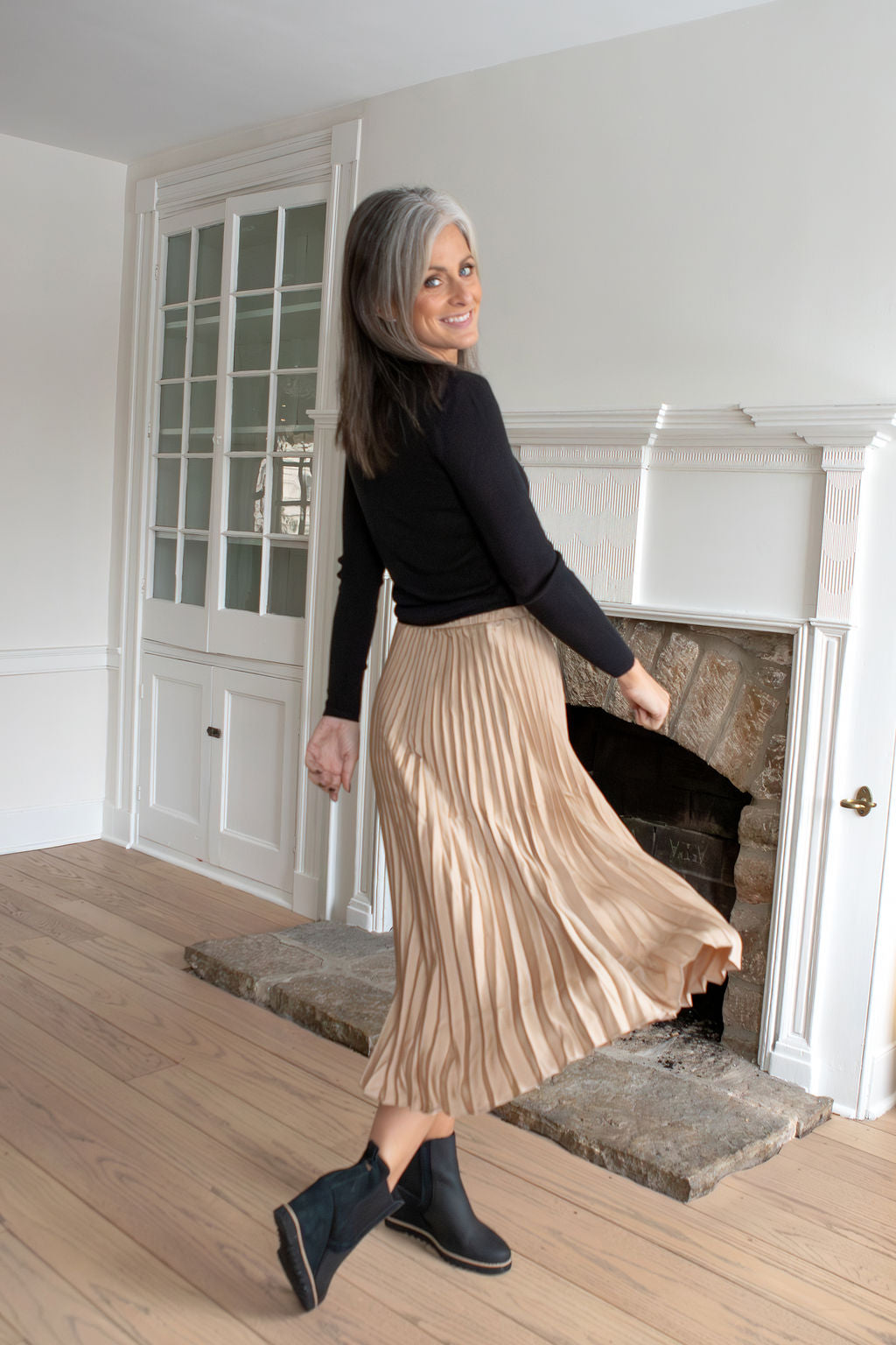 Eloise Gold Pleated Midi Skirt