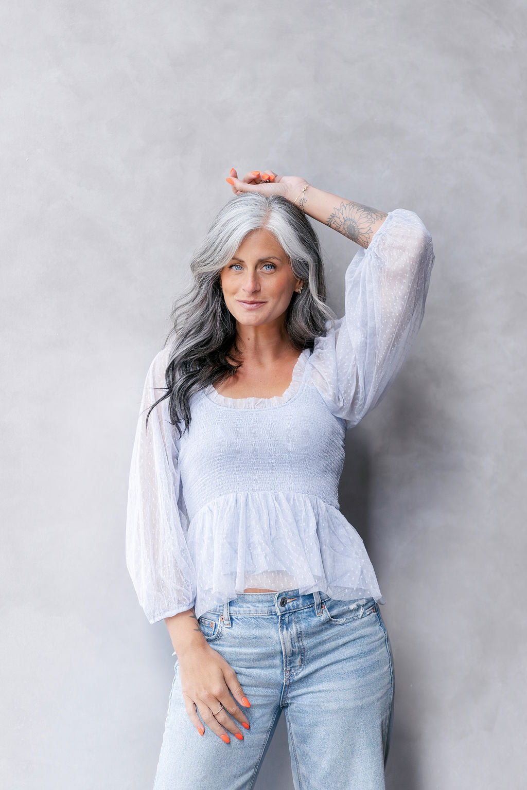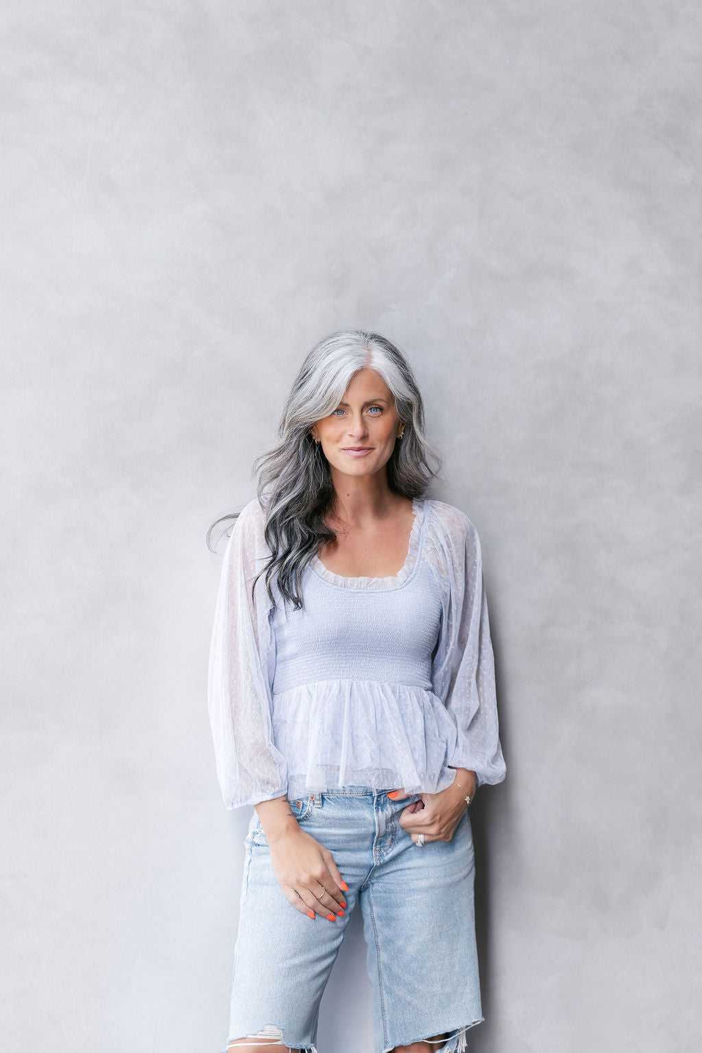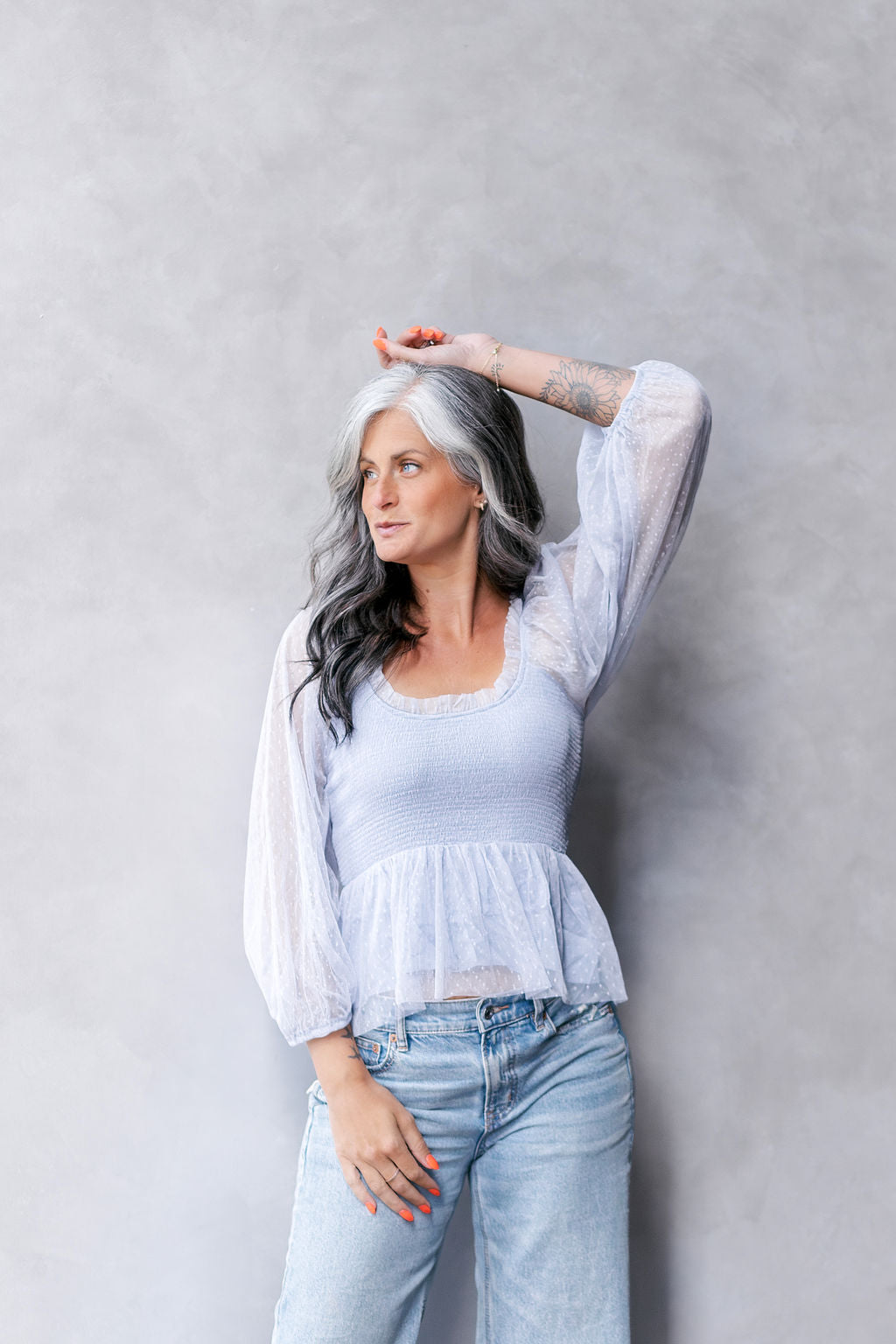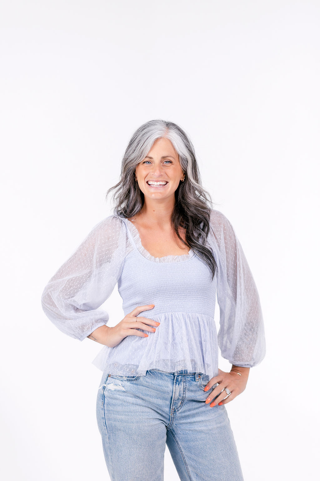 This top is perfect- with its sheer swiss dot fabric, smocked bodice, and ruffle neckline. It's lined, woven, and lightweight, adding just the right amount of semi-sheer flair to any outfit.