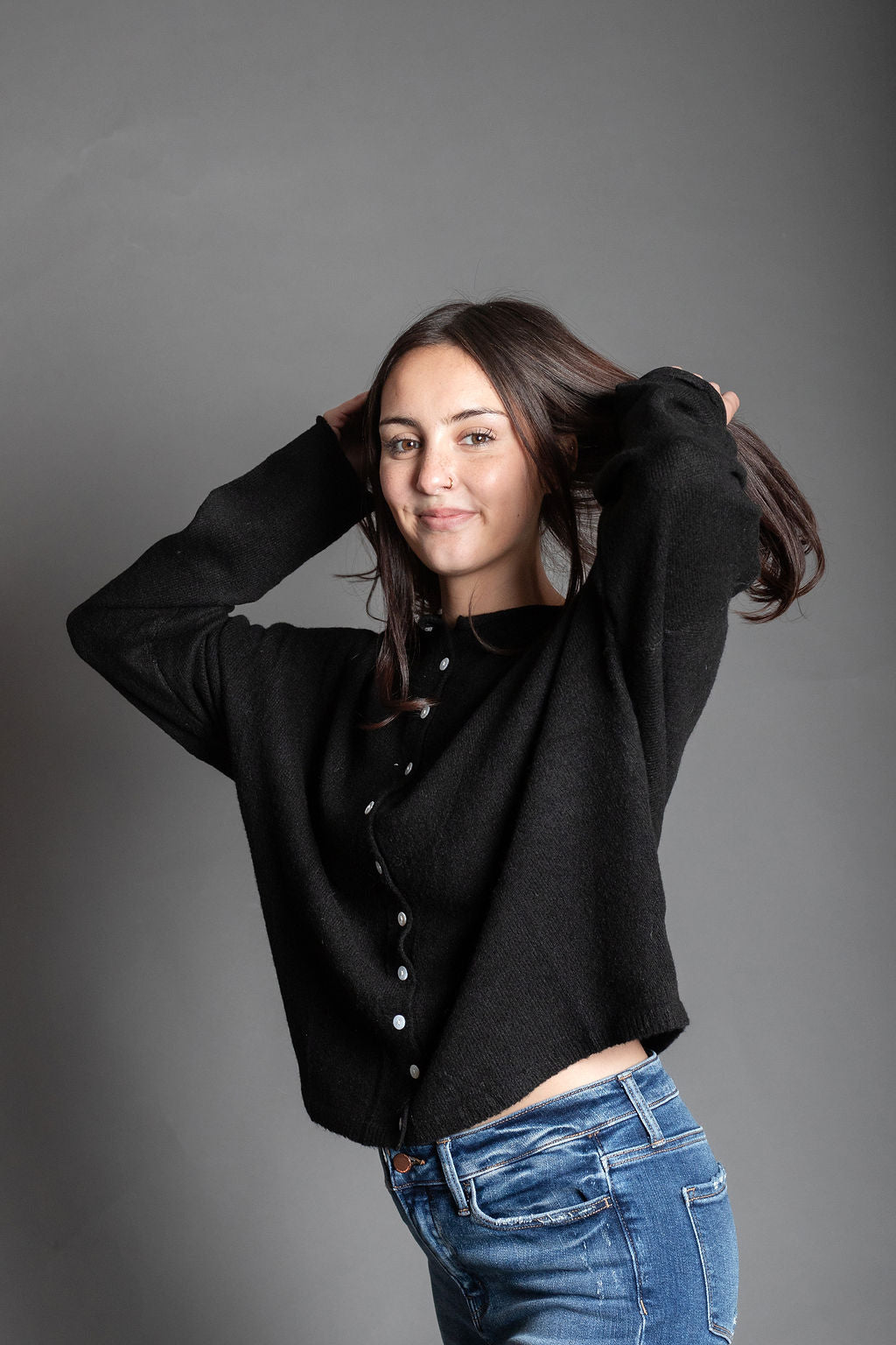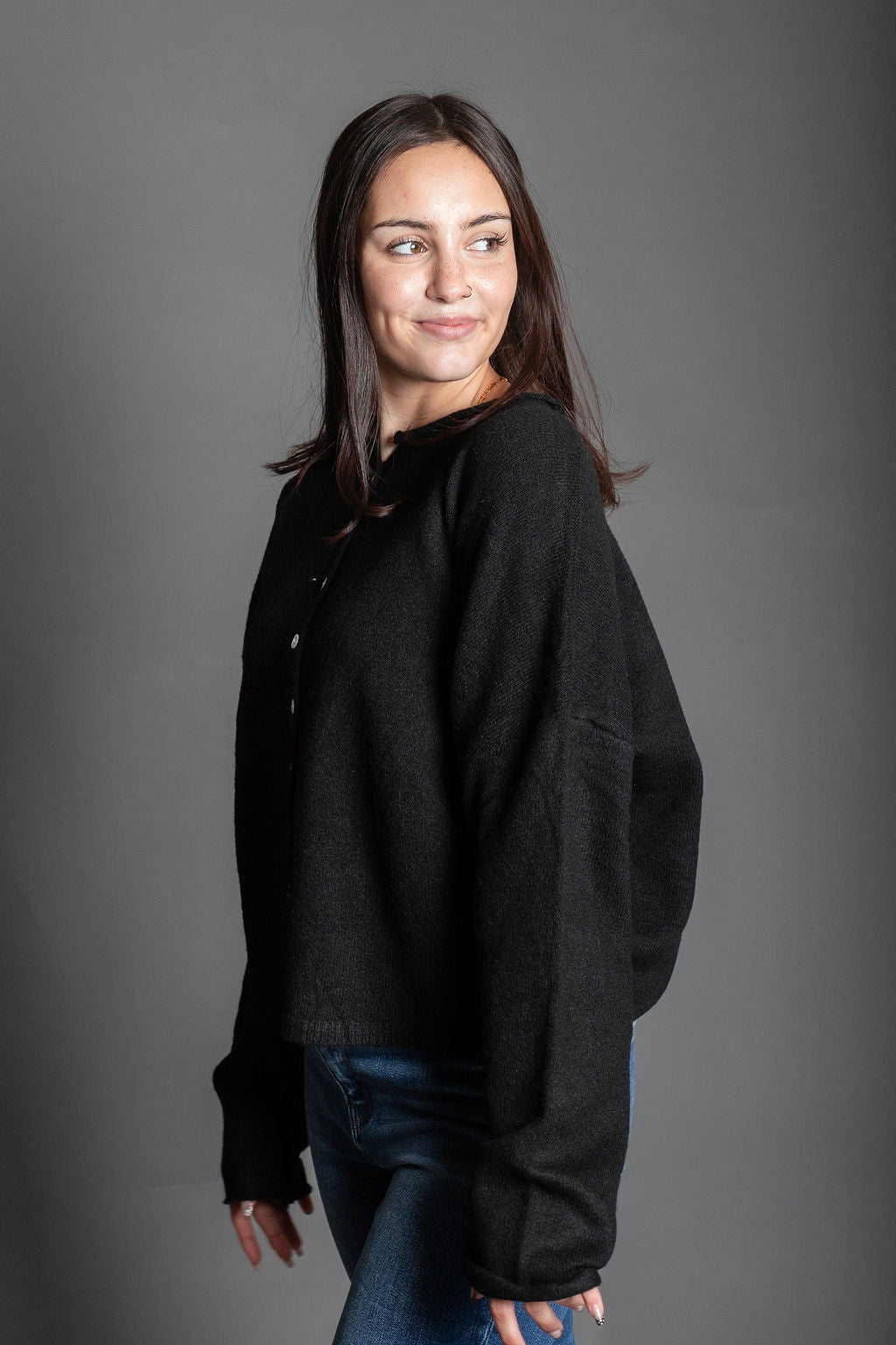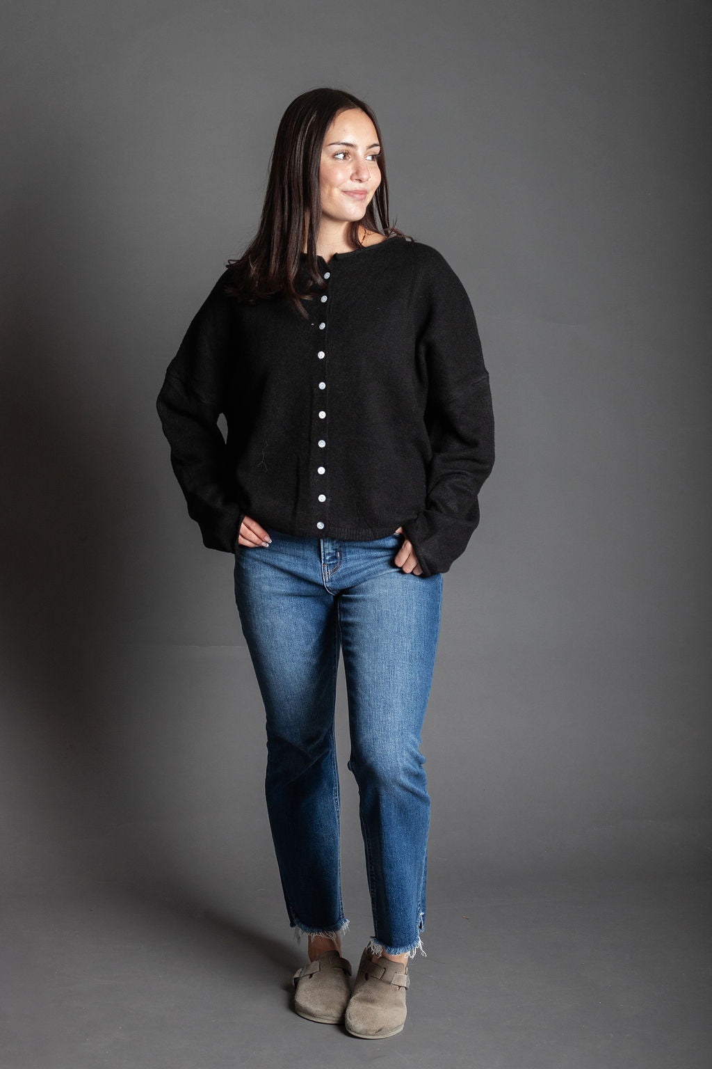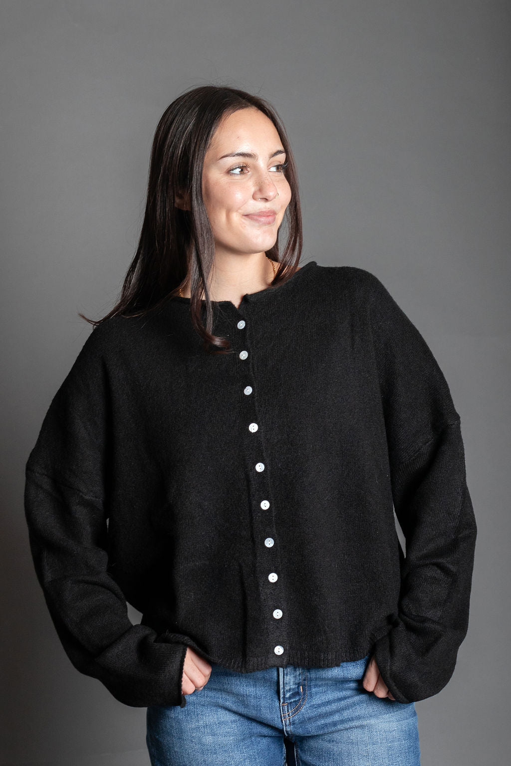 Eva Black Essential Button Down Cardigan