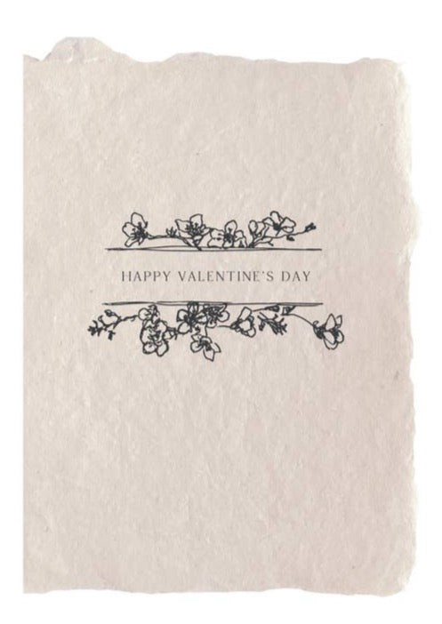 Card features a floral illustrated frame around “happy valentine’s day.”