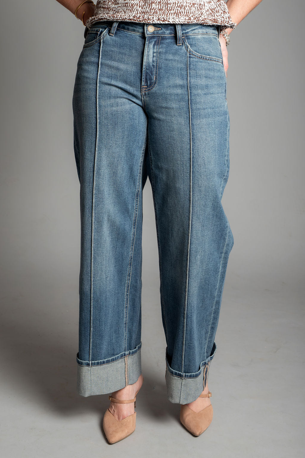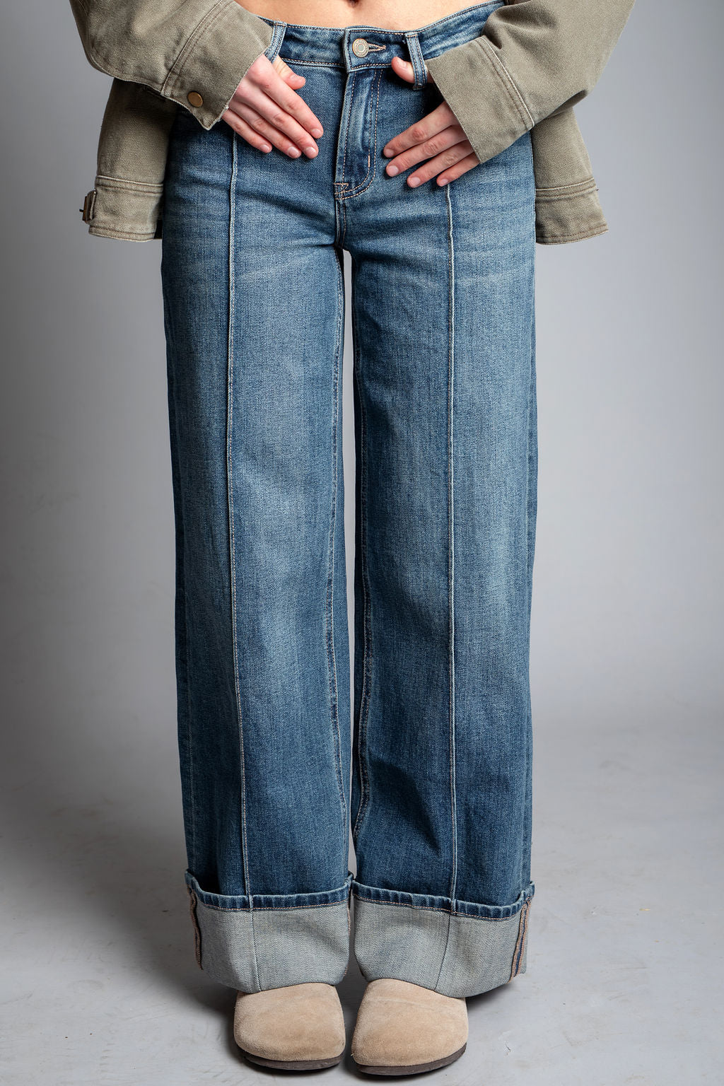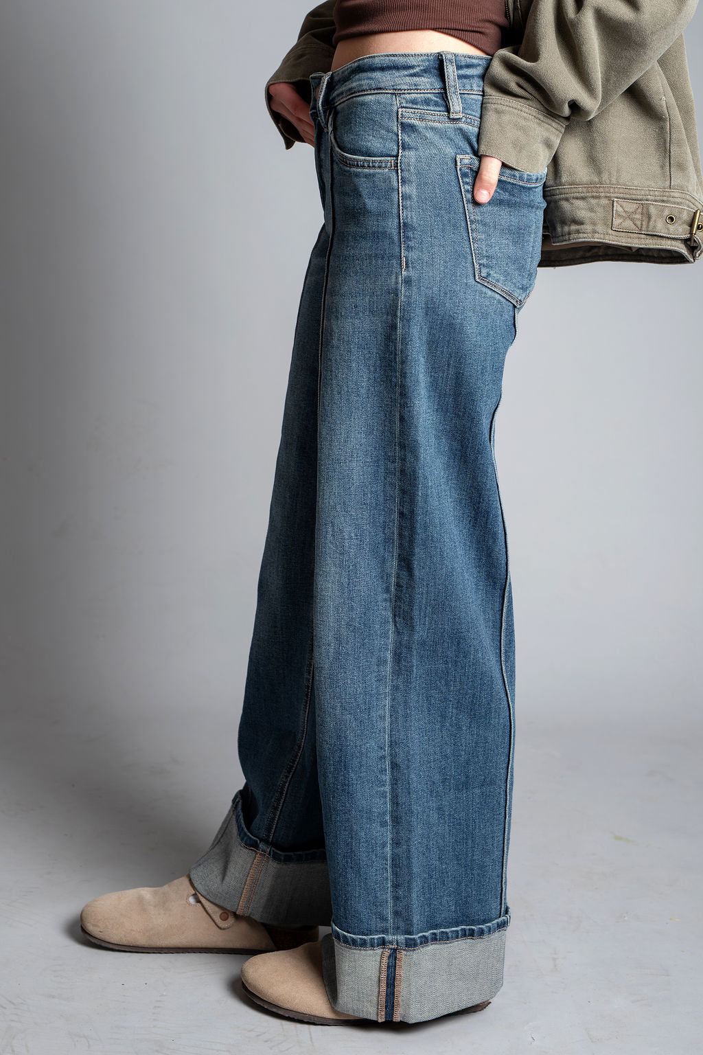 Authenticity - Mid Rise Pin Tuck Cuffed Baggy Wide Jeans by Flying Monkey