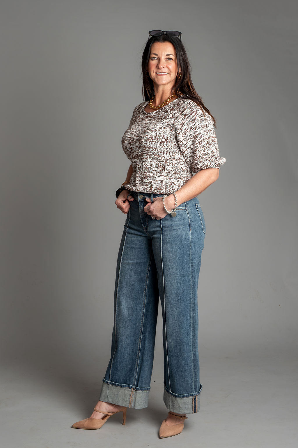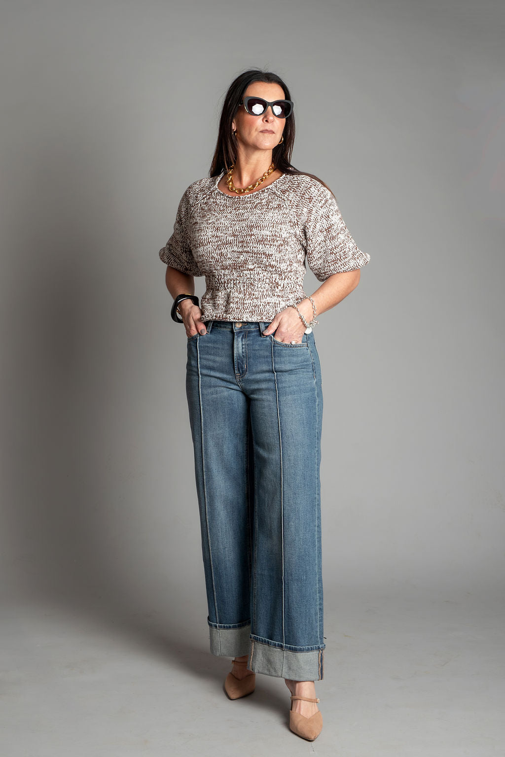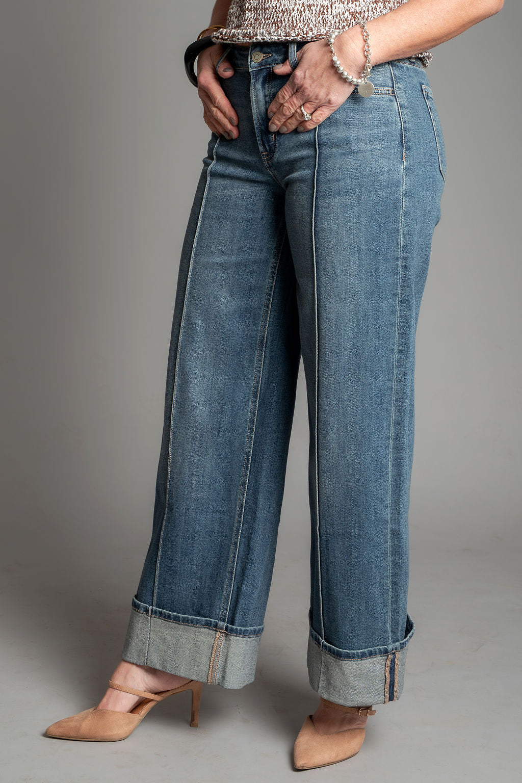 Authenticity - Mid Rise Pin Tuck Cuffed Baggy Wide Jeans by Flying Monkey