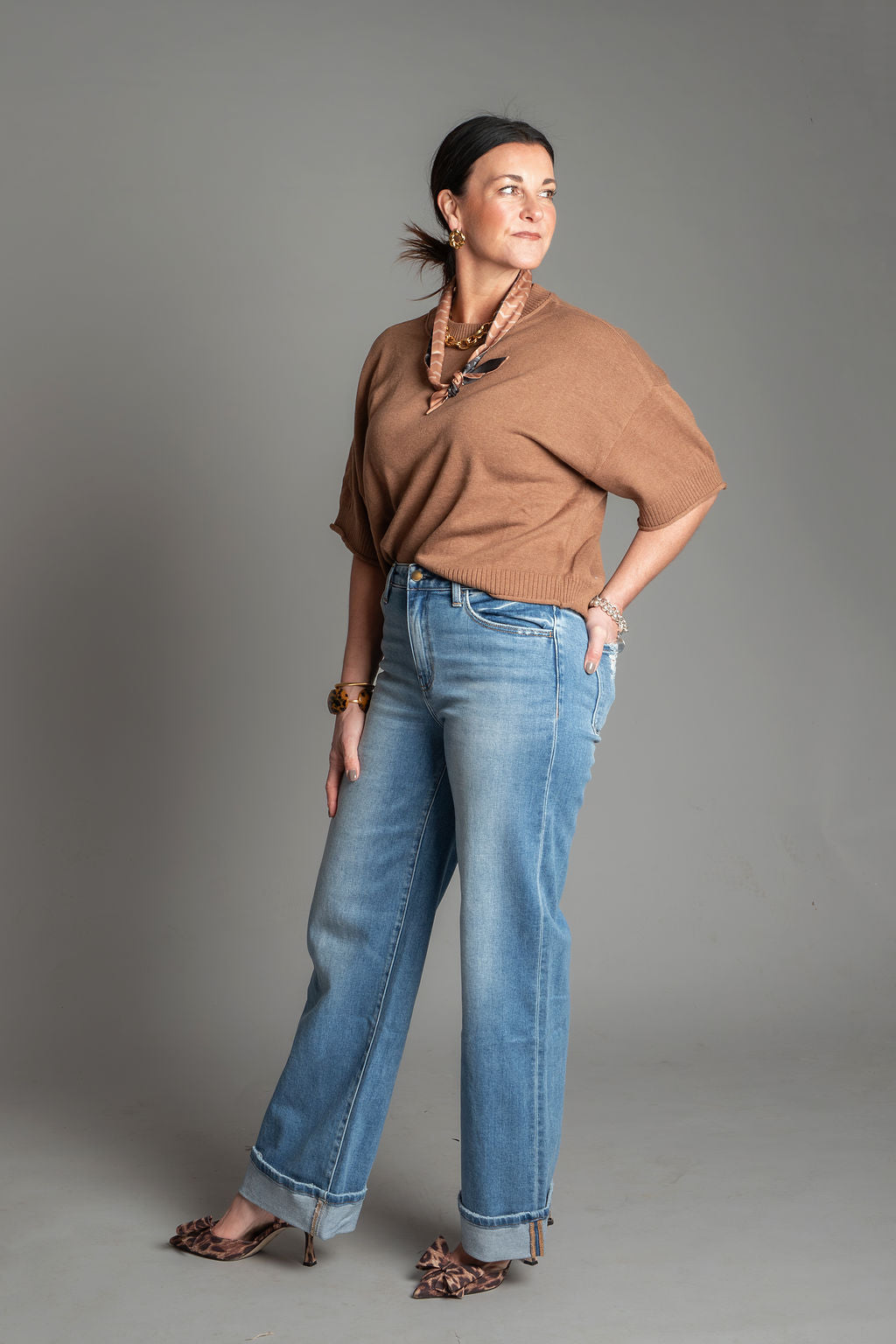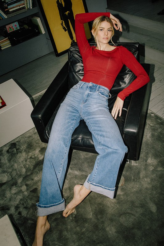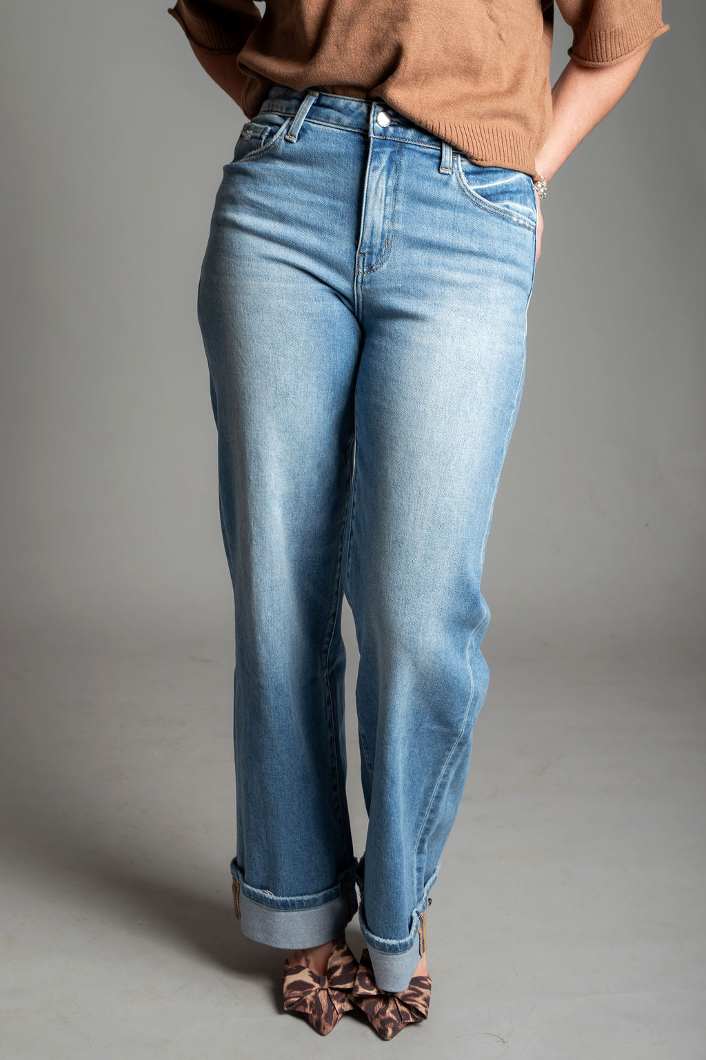 Westbury - High Rise Wash Cuffed Wide Jeans by Flying Monkey