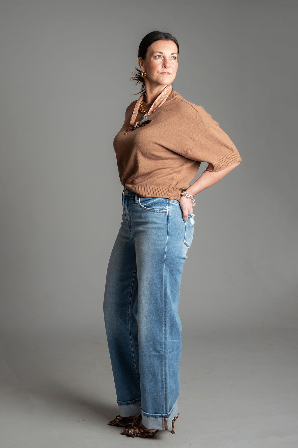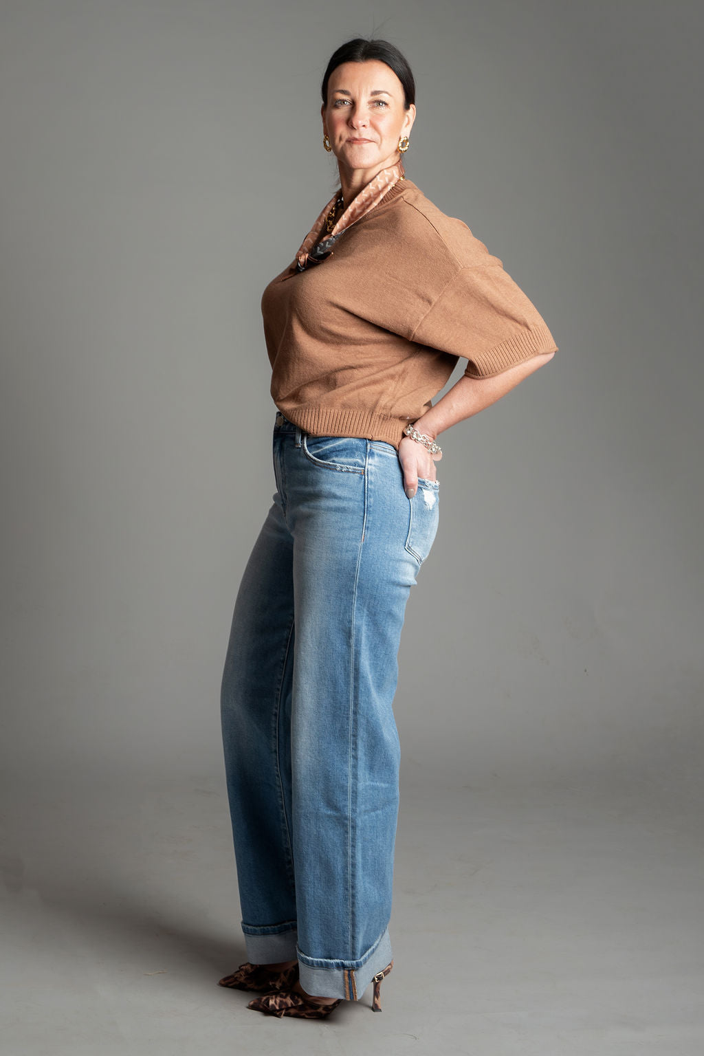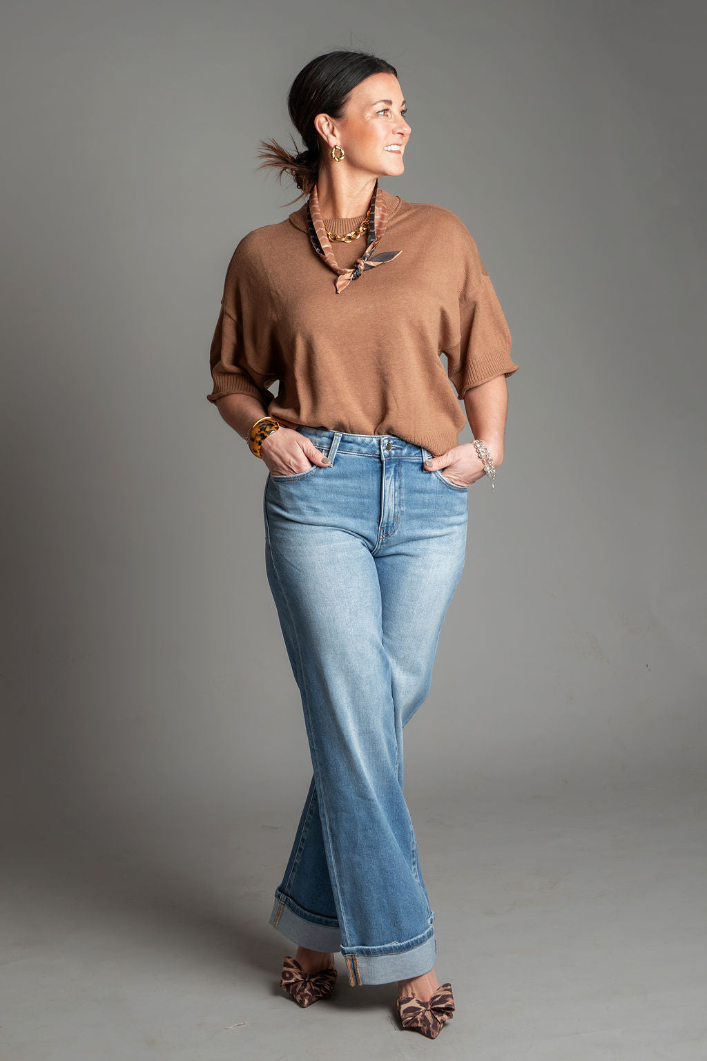 Westbury - High Rise Wash Cuffed Wide Jeans by Flying Monkey