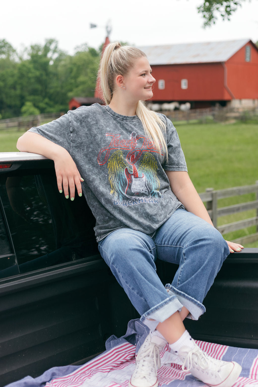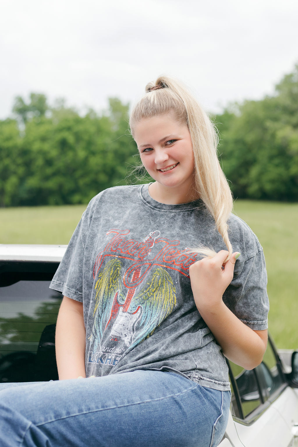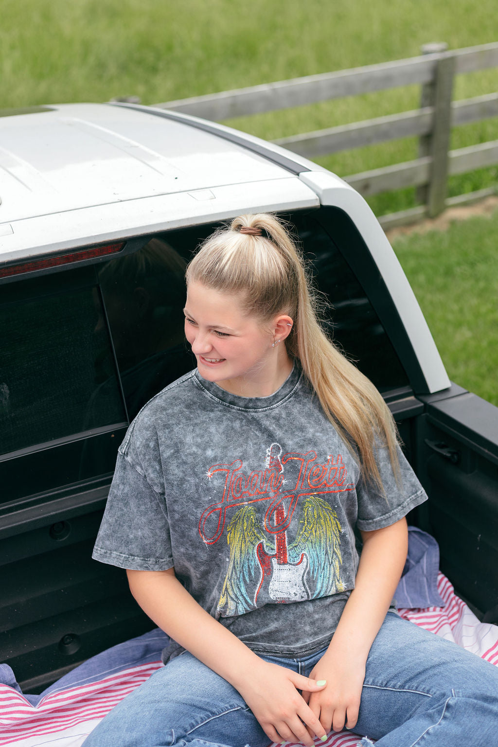 This Joan Jett Wings Mineral Black Washed Tee comes crafted from 100% cotton for a comfortable and soft feel. With its relaxed feel, this graphic will become a staple in your every day wardrobe! It's also the perfect graphic for any summer concert!