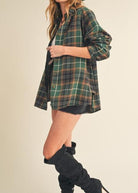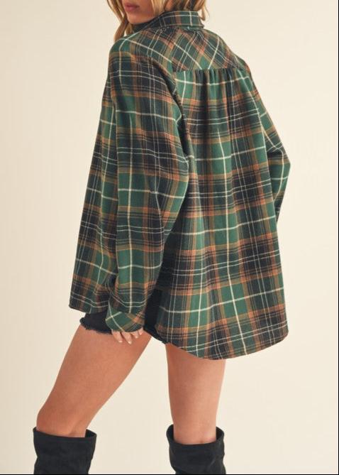Wrap yourself in cozy comfort with this flannel - featuring a boxy silhouette that adds a relaxed feel, while the side step hem brings a modern touch. Raglan sleeves enhance mobility, making it a perfect blend of style and functionality for chilly days.