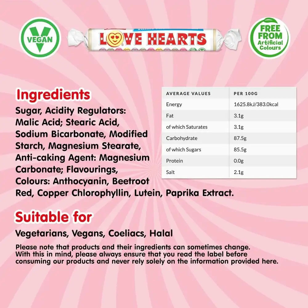 Love Hearts: the iconic, fizzy fruit-flavored discs with a charming twist! These aren't just sweets; they're tiny messages of love and fun!