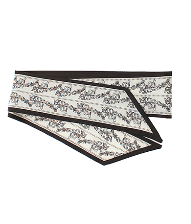 White Bow & Flower Printed Narrow Silky Scarf