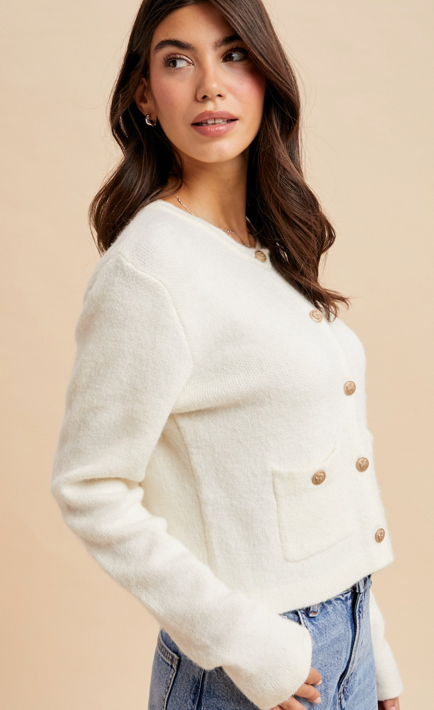 Annette Creme Cardigan w/ Baroque Buttons