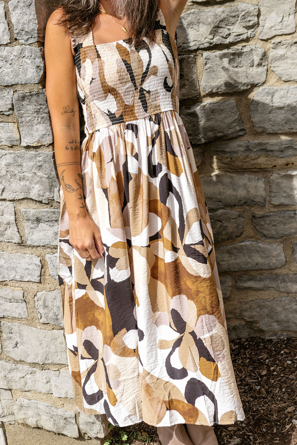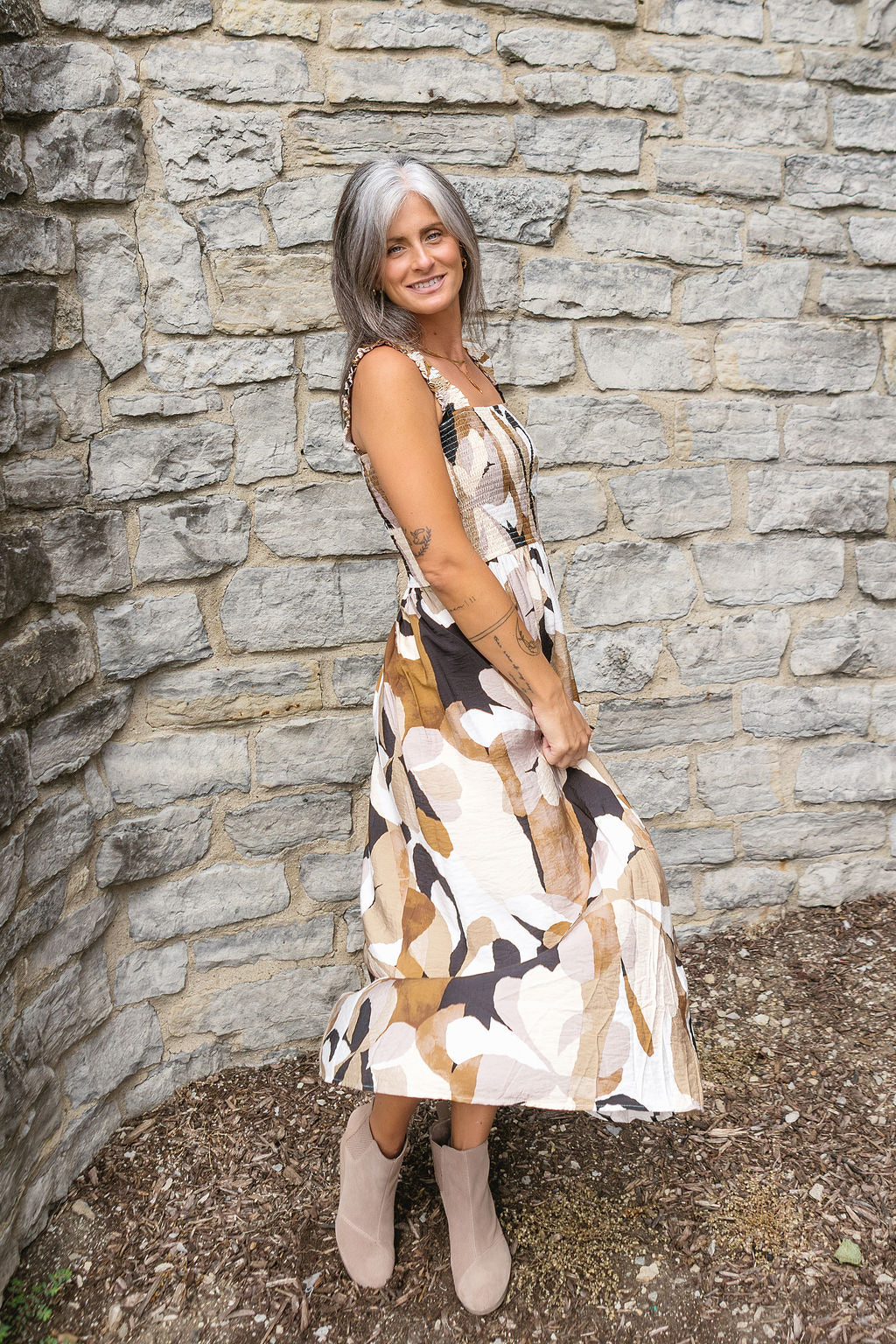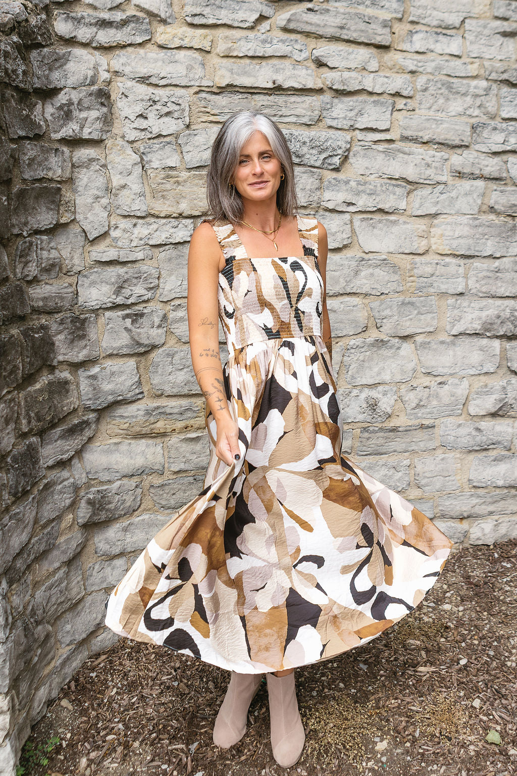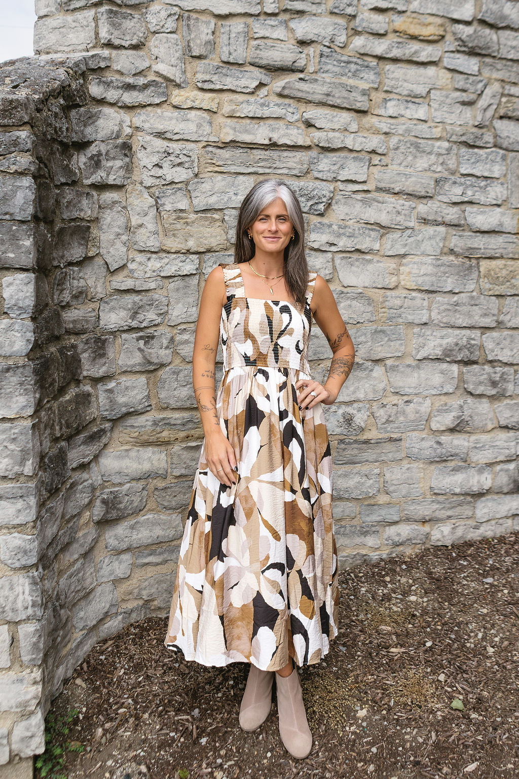 This flowing maxi features a charming floral pattern that adds a touch of whimsy to your look. Perfect for sunny days or breezy evenings, its relaxed fit keeps you comfy while turning heads. Embrace effortless elegance with this playful dress that’s ready to brighten up your wardrobe.